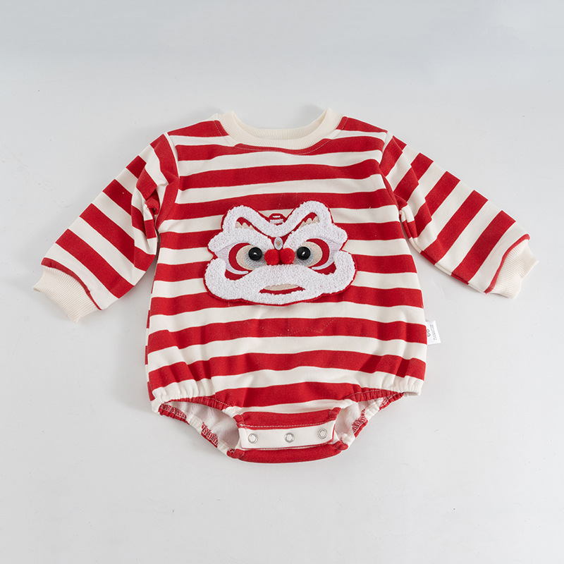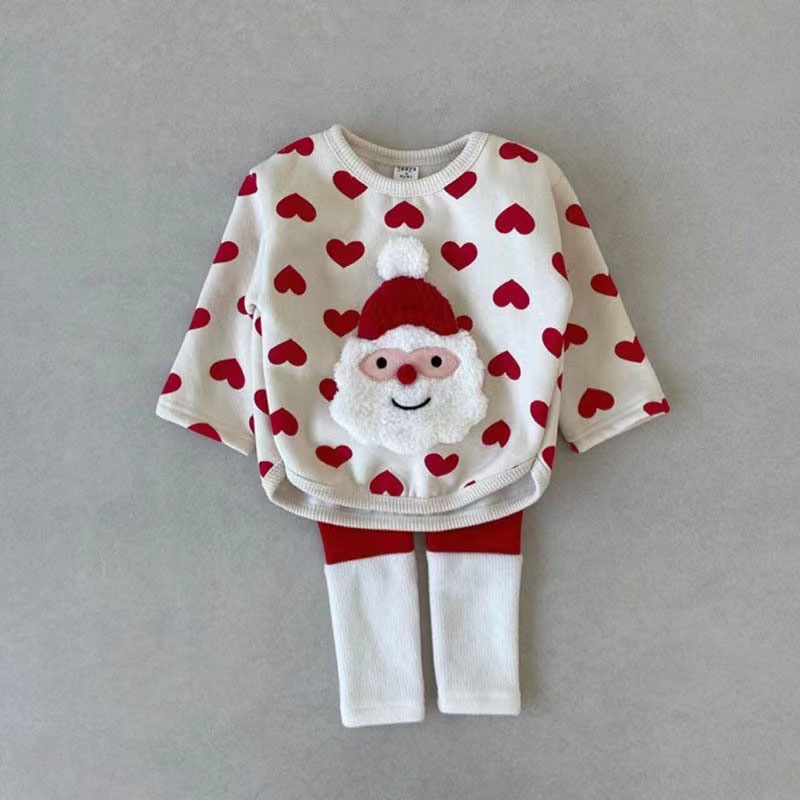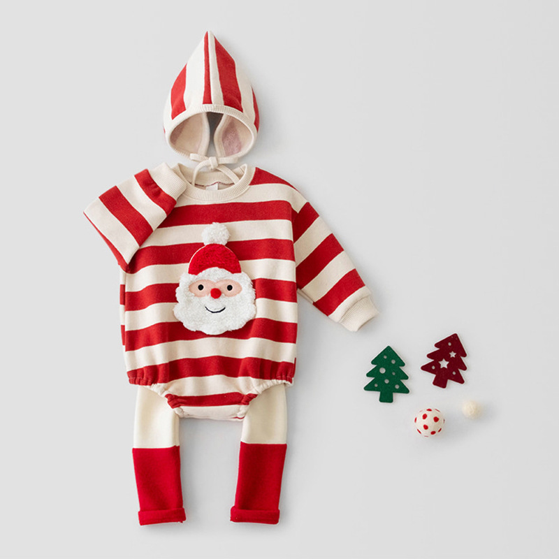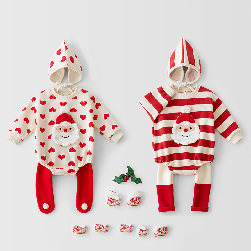 2024婴儿圣诞节加绒连体衣男女宝宝包屁哈衣长袖爱心爬爬服送帽子