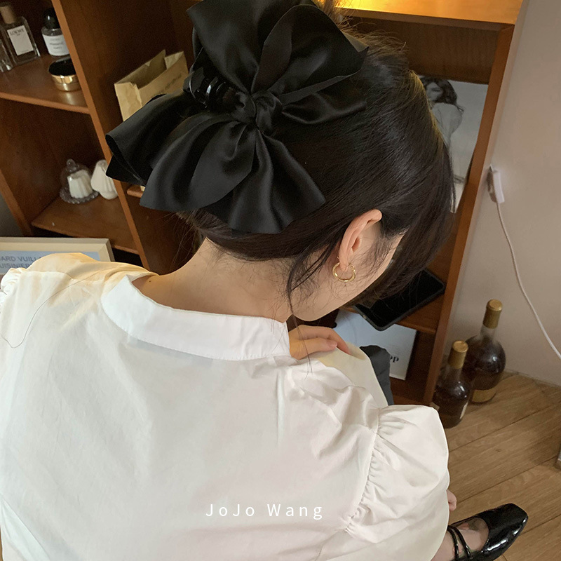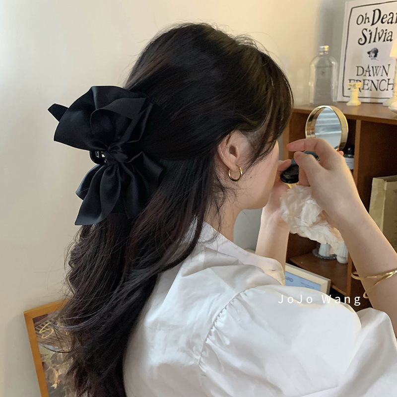 大蝴蝶结缎面发夹盘发抓夹大号发量多鲨鱼夹秋季高级感韩国发抓女