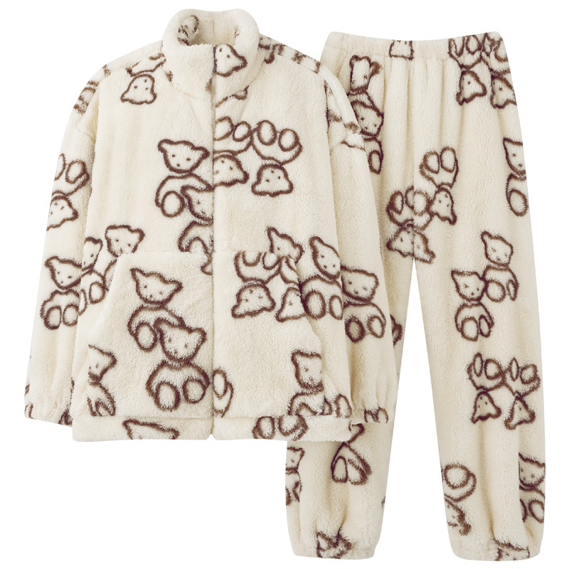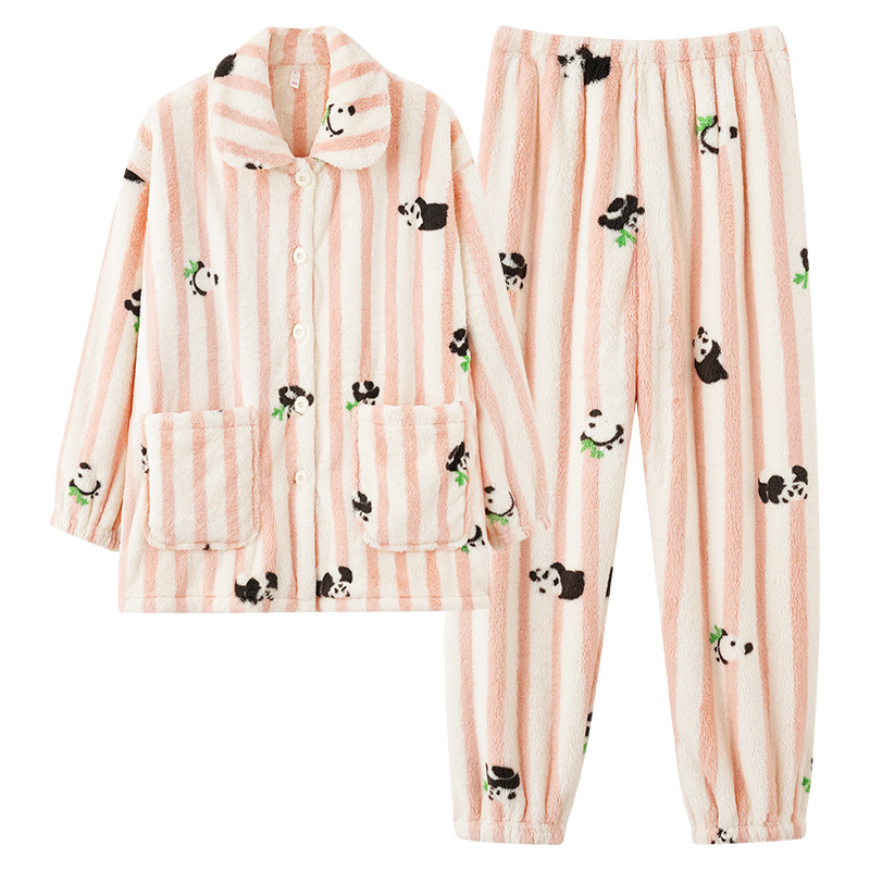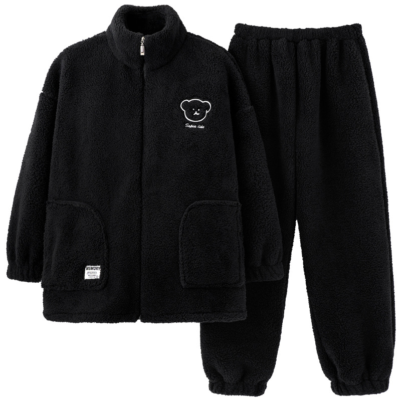 秋冬季珊瑚绒贵妃绒长毛绒半边绒情侣睡衣男女士家居