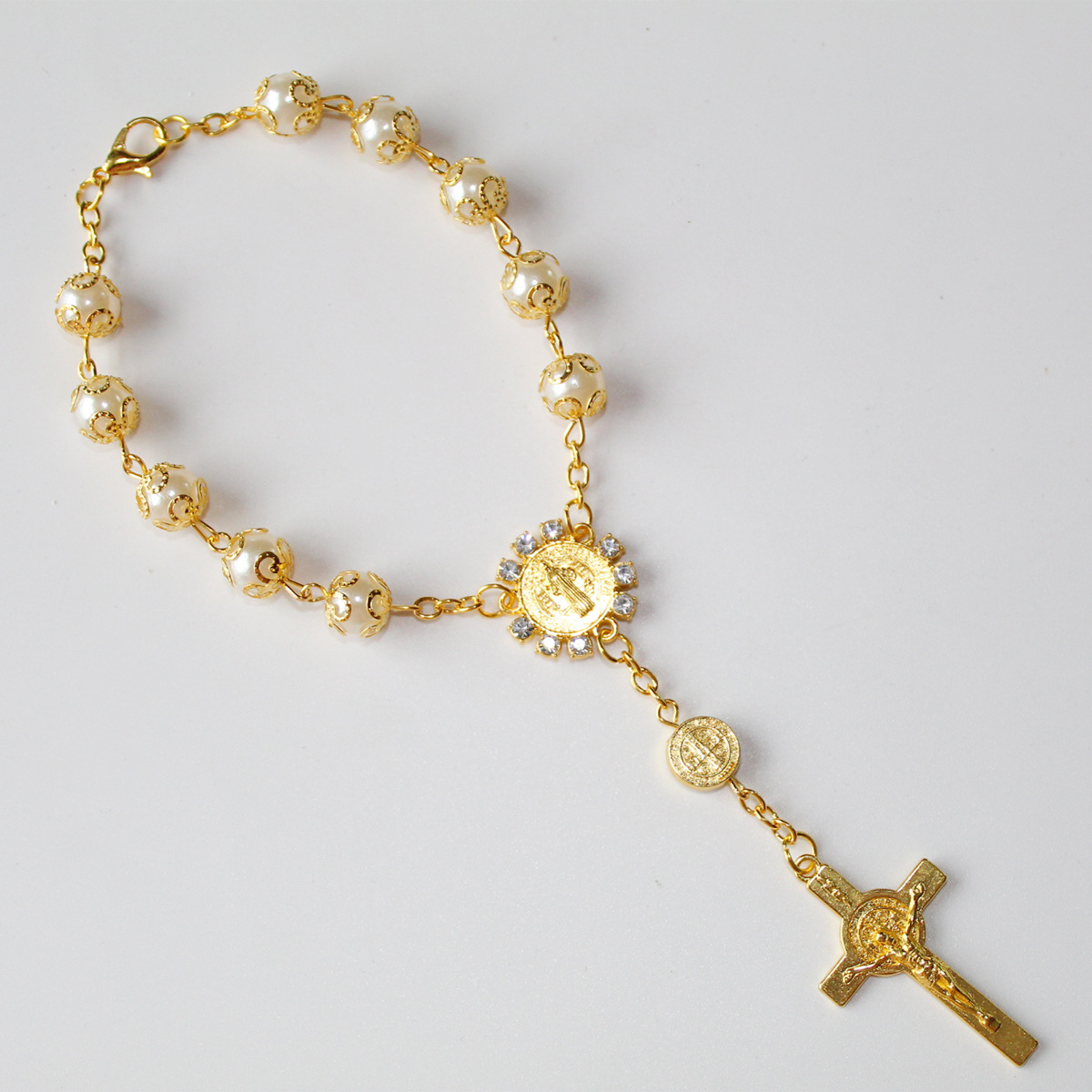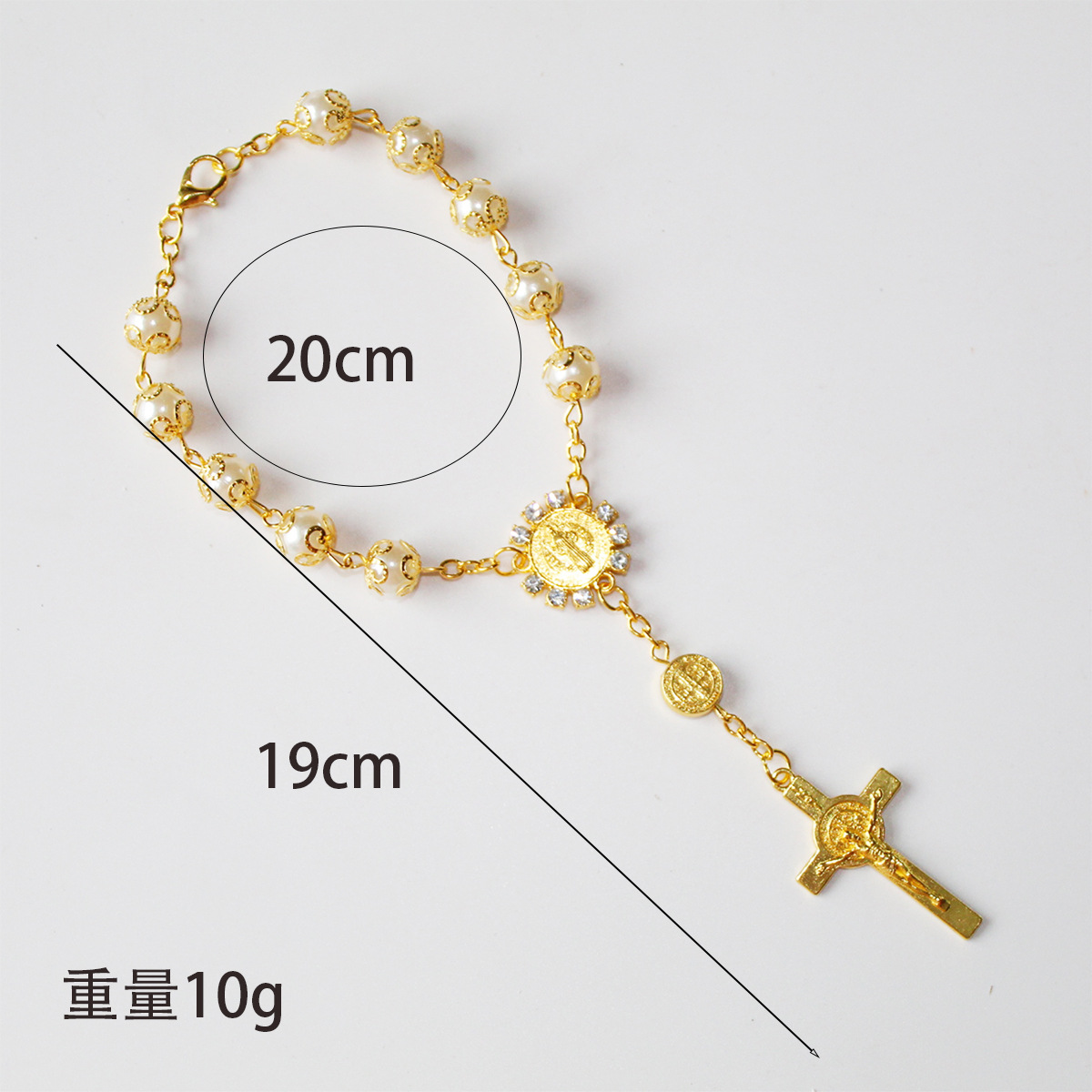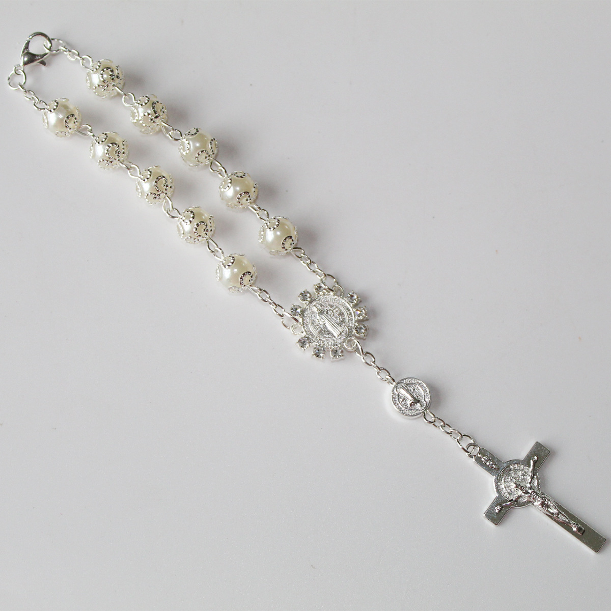 欧美外贸玻璃仿珍珠念珠十字架串珠祈祷手链厂家批发