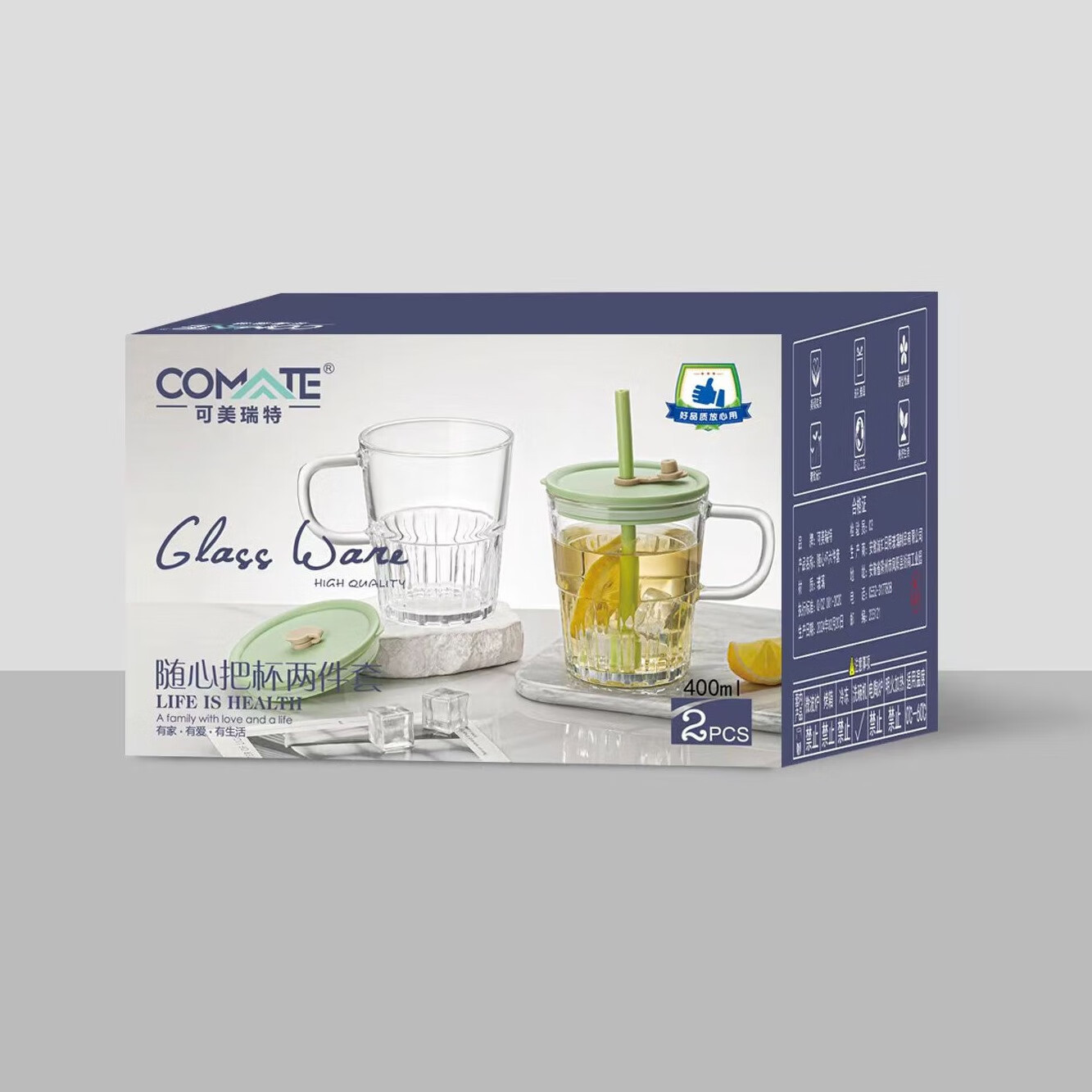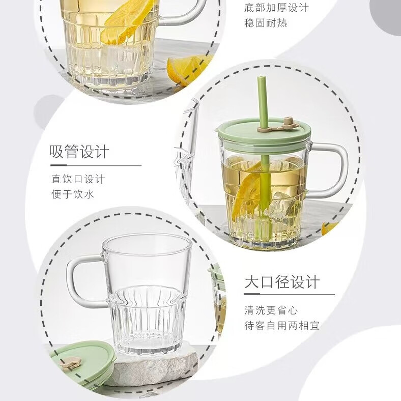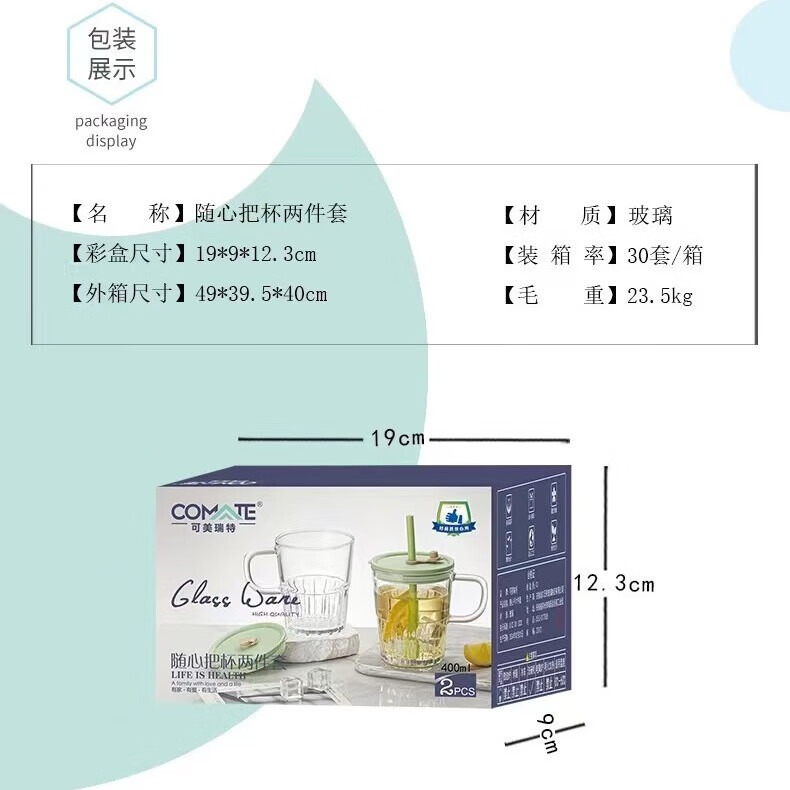玻璃杯随心把杯两件套两只装玻璃杯吸管杯随手把杯牛奶杯礼盒装