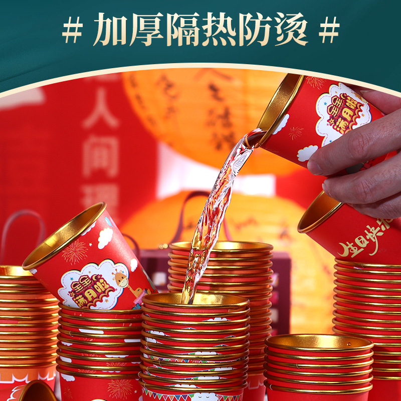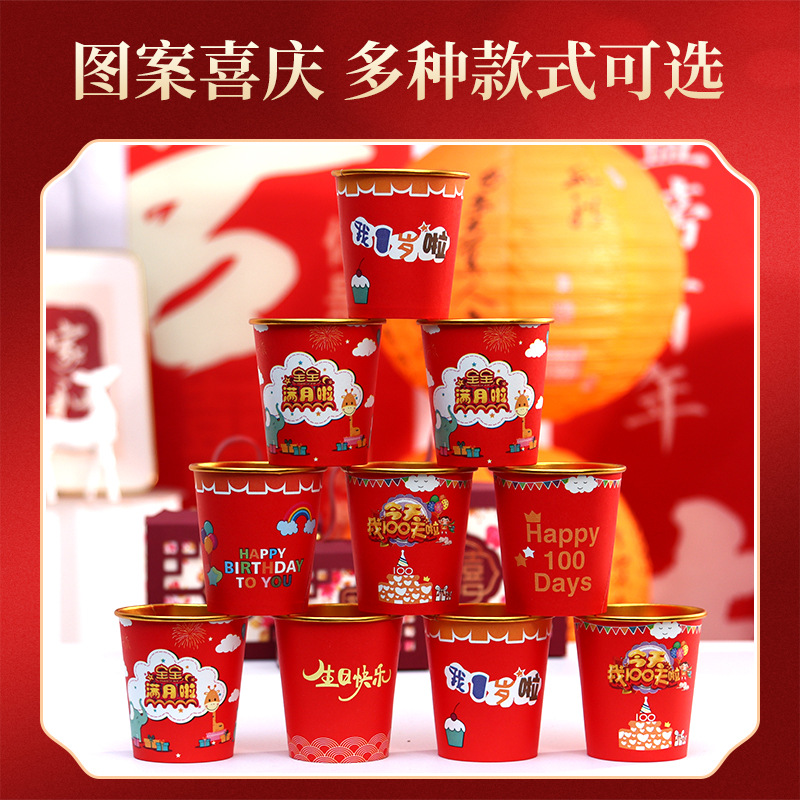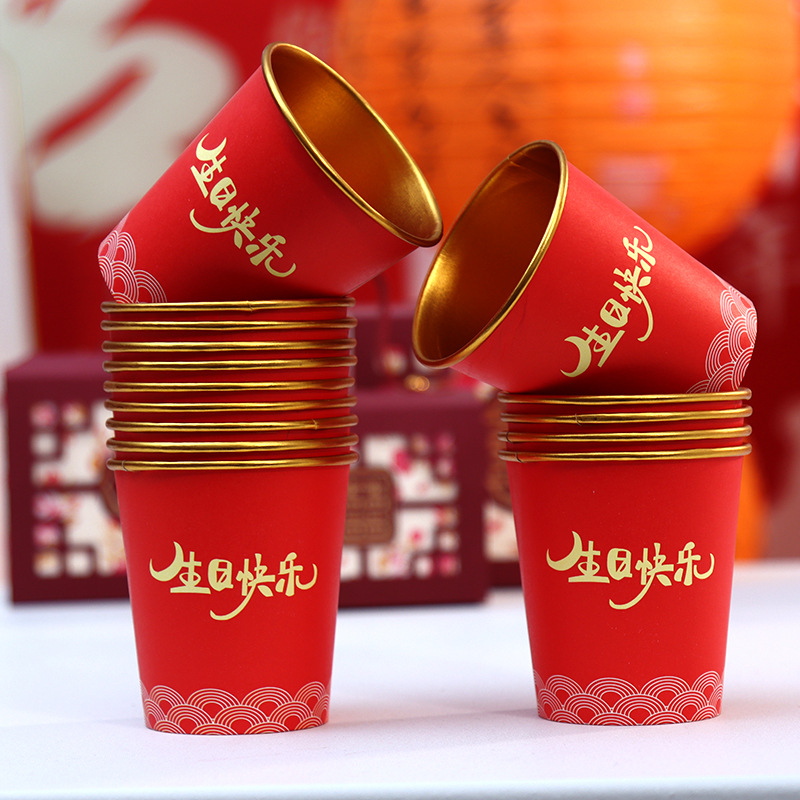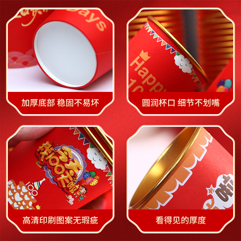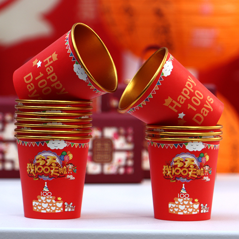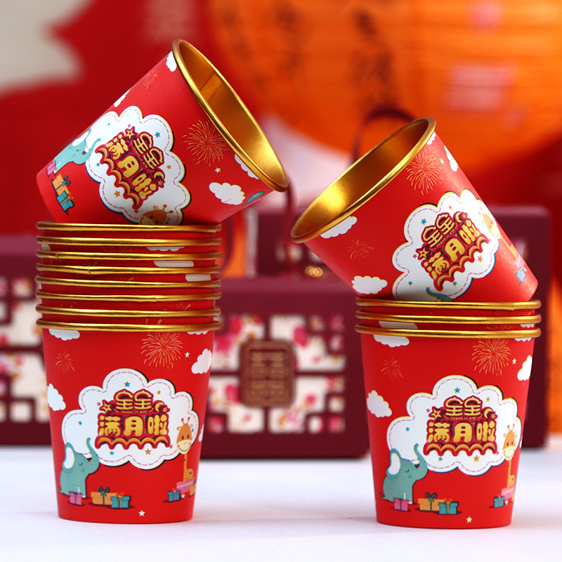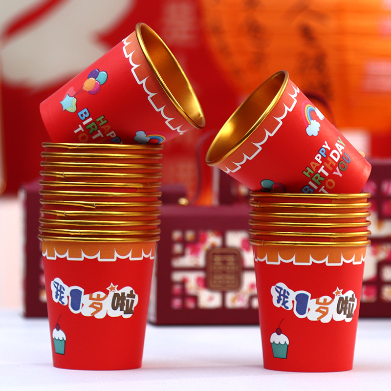 金箔高档一次性加厚纸杯生日宴会纸杯宝宝满月百天周岁一次性杯子