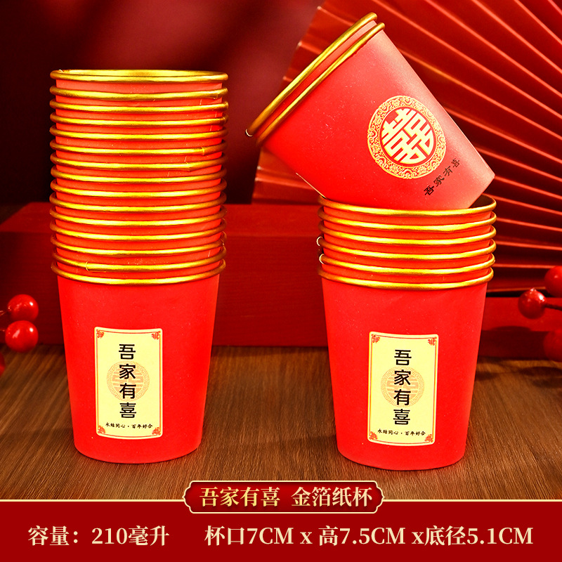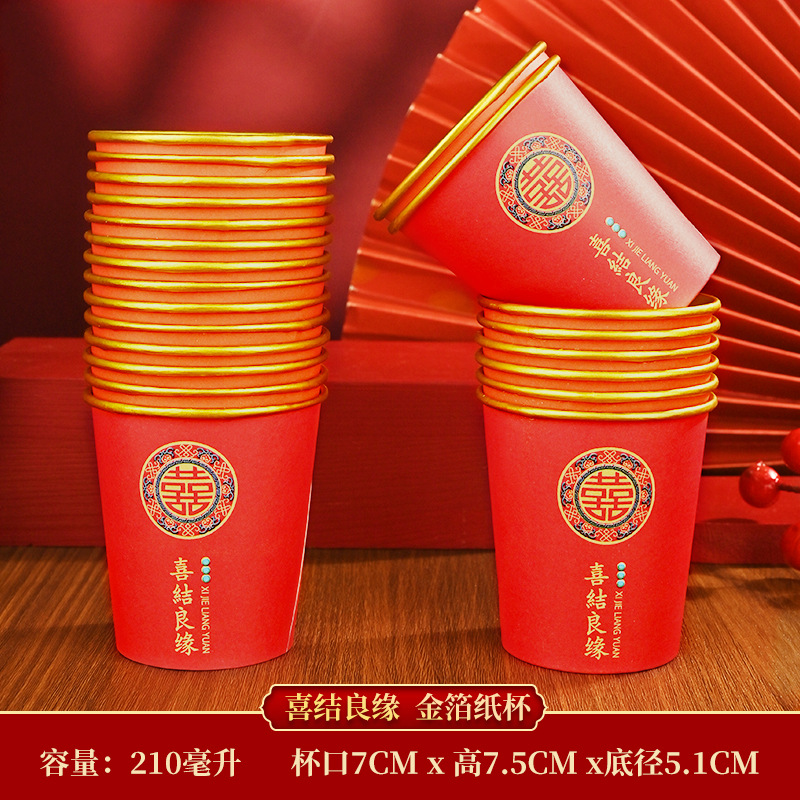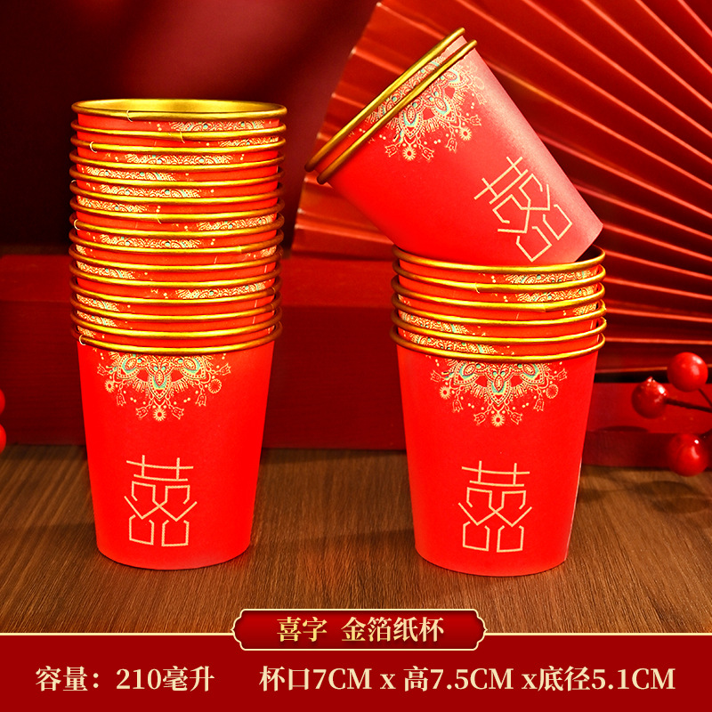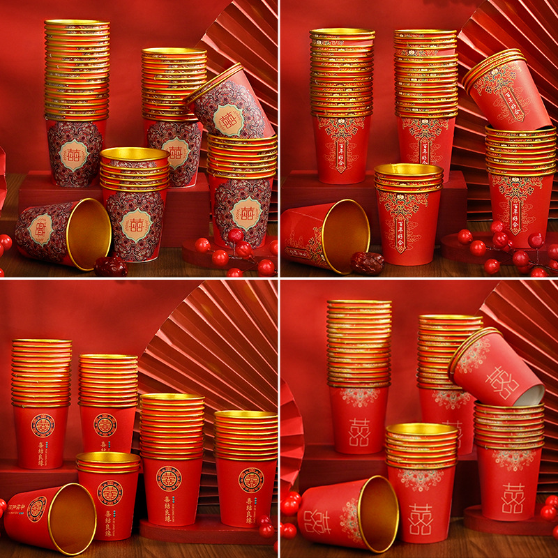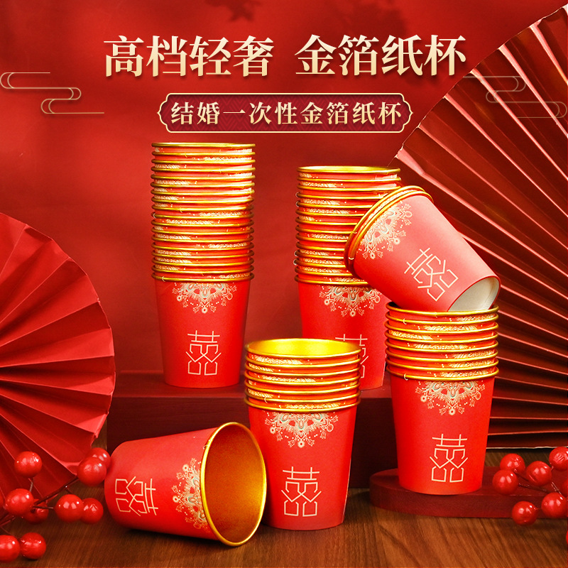 金箔婚宴高档一次性杯子加厚结婚用品喜宴红色纸杯子防烫防漏红色