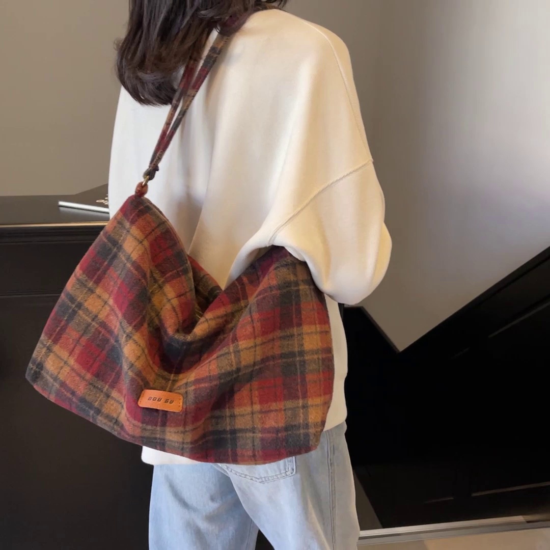 2024时尚大容量秋冬季通勤腋下包托特复古格子潮流女包2938