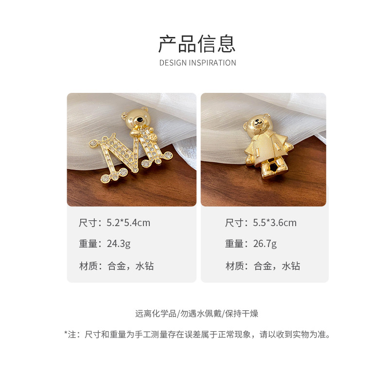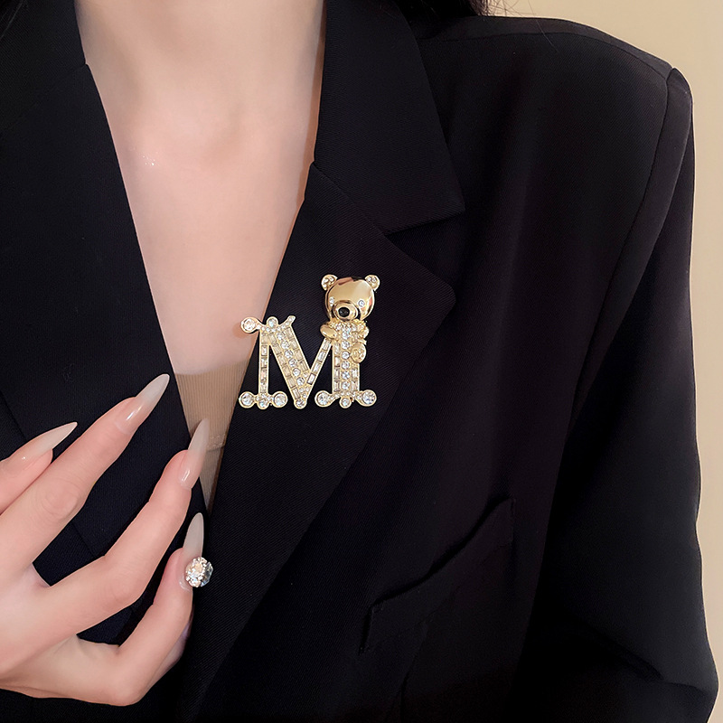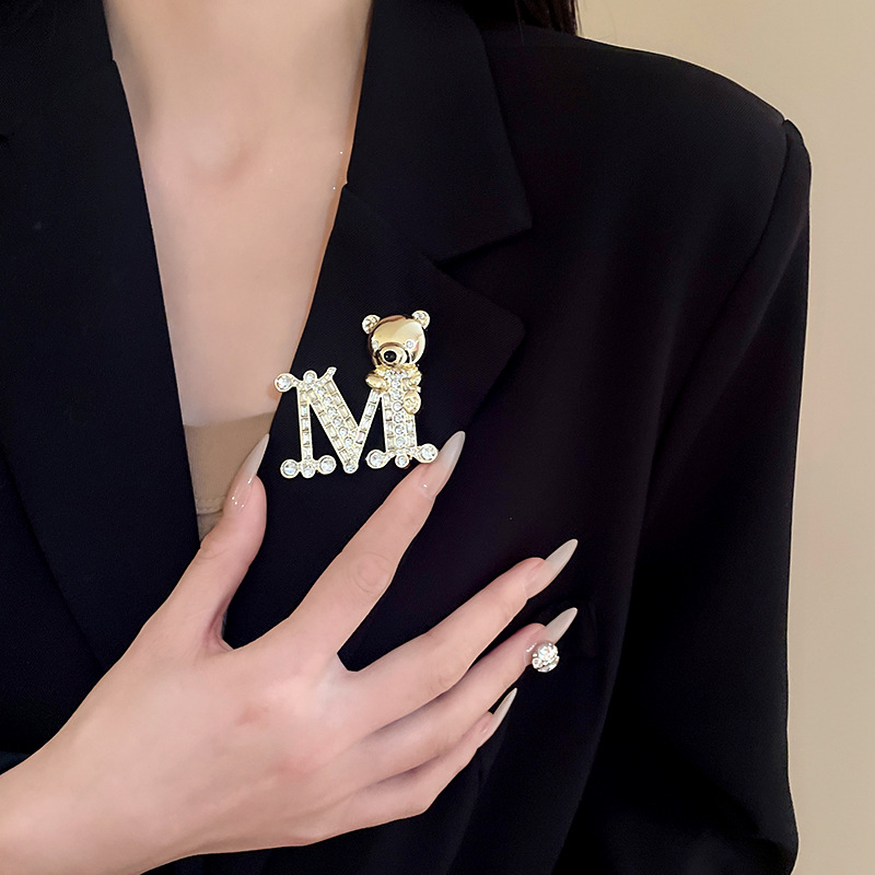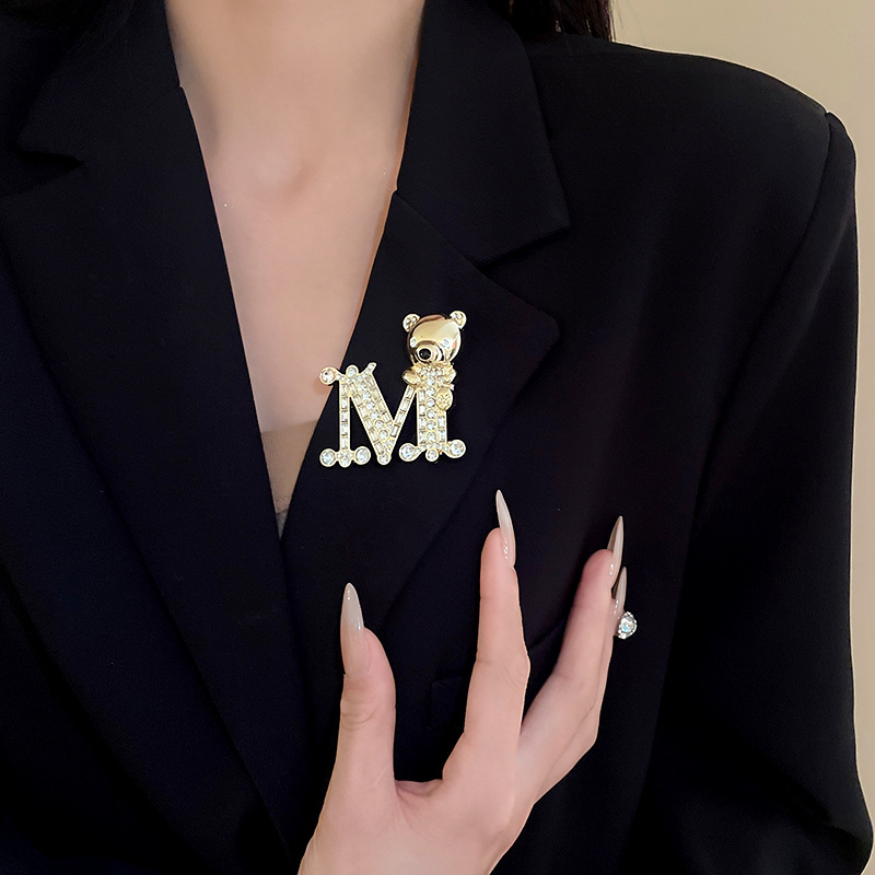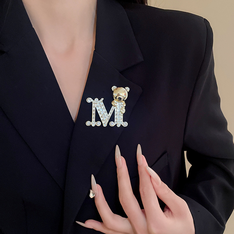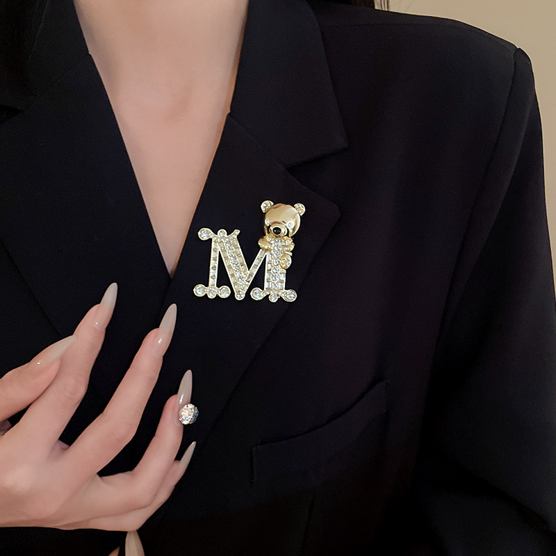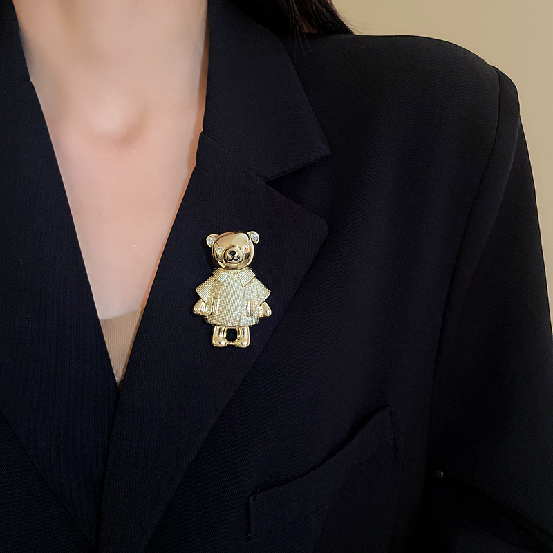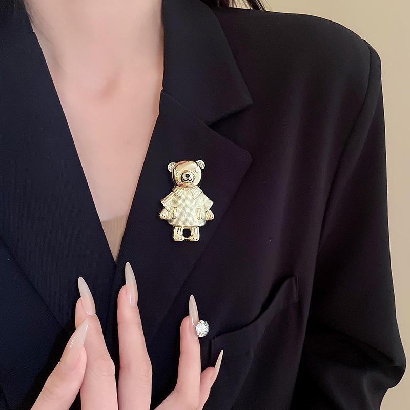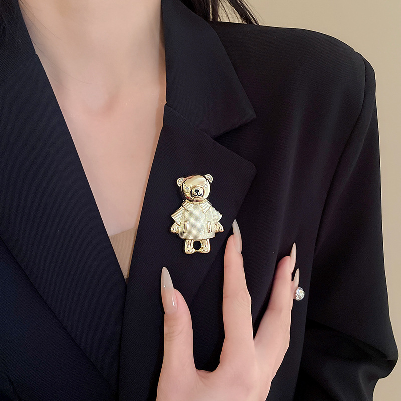轻奢高级感西装胸花韩系ins大气别针配饰女镶钻滴油小熊字母胸针