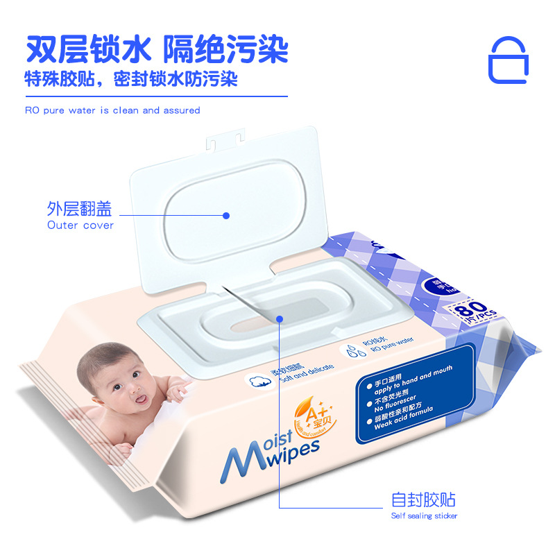 新生儿婴儿80片宝宝湿巾孕妇母婴手口专用清洁湿纸巾现货袋装带盖