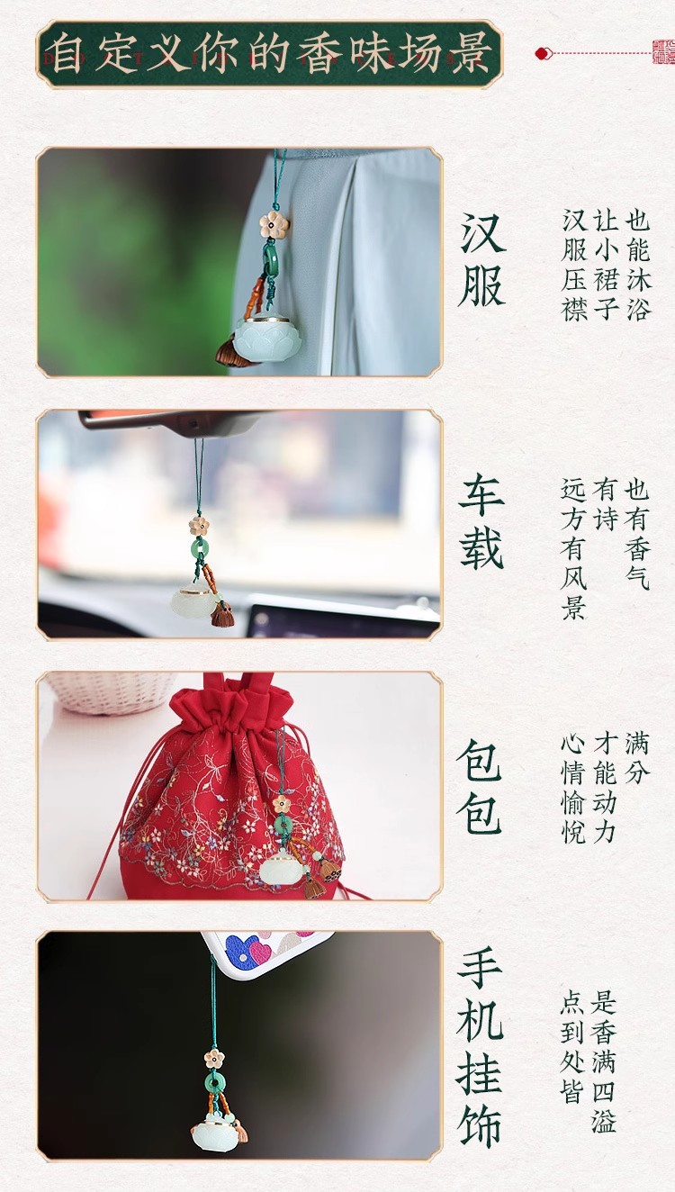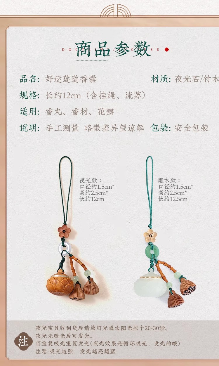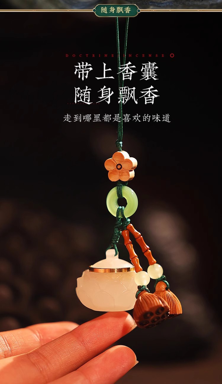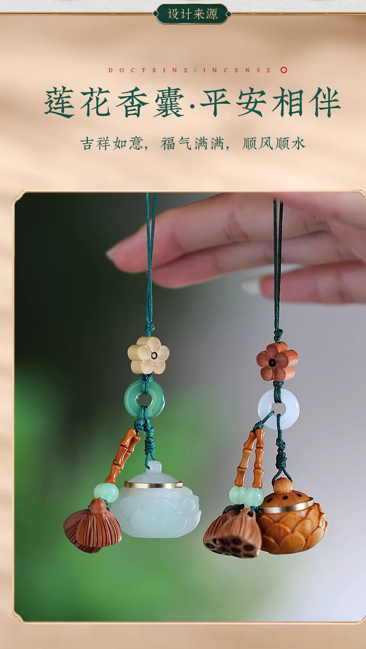 檀木莲花镂空香囊球古风香丸随身佩戴持久留熏香车载手机吊坠挂件
