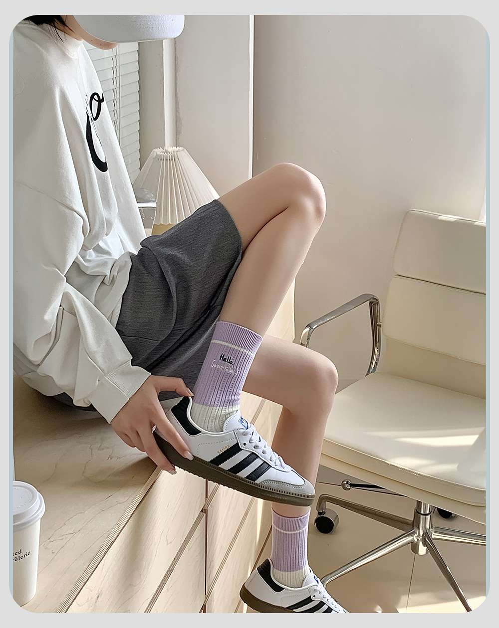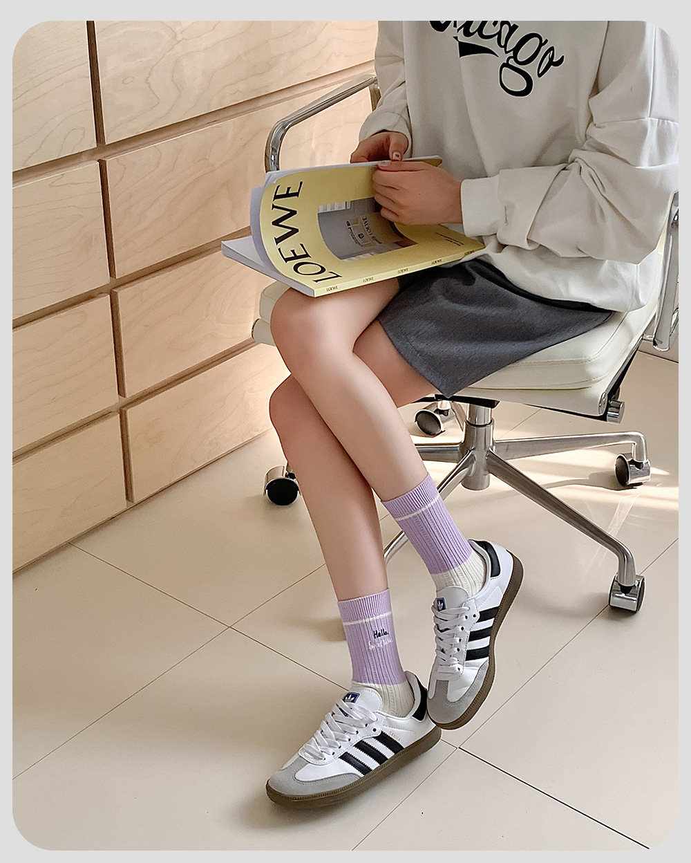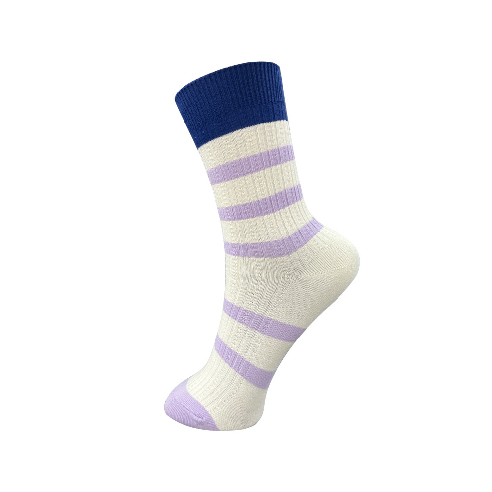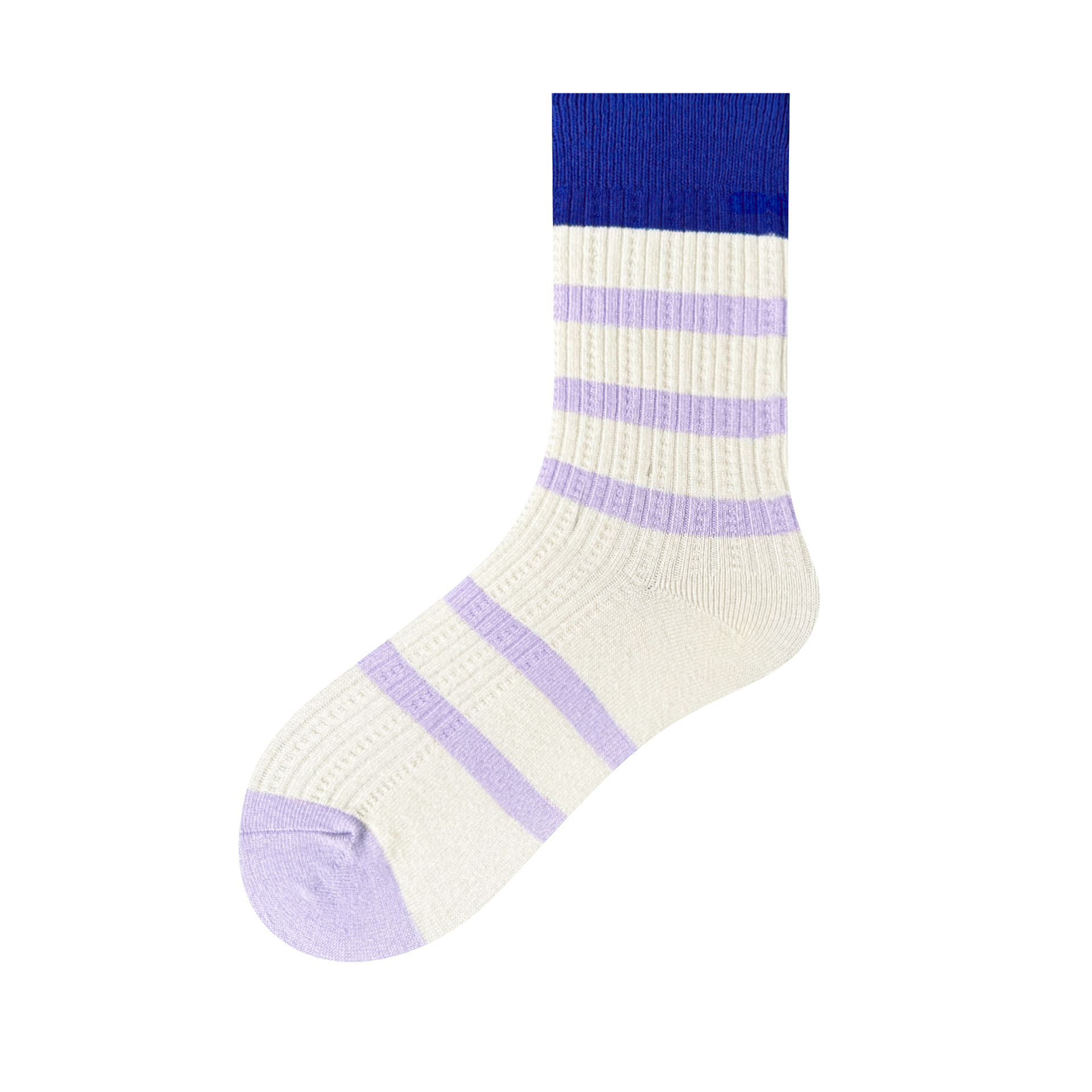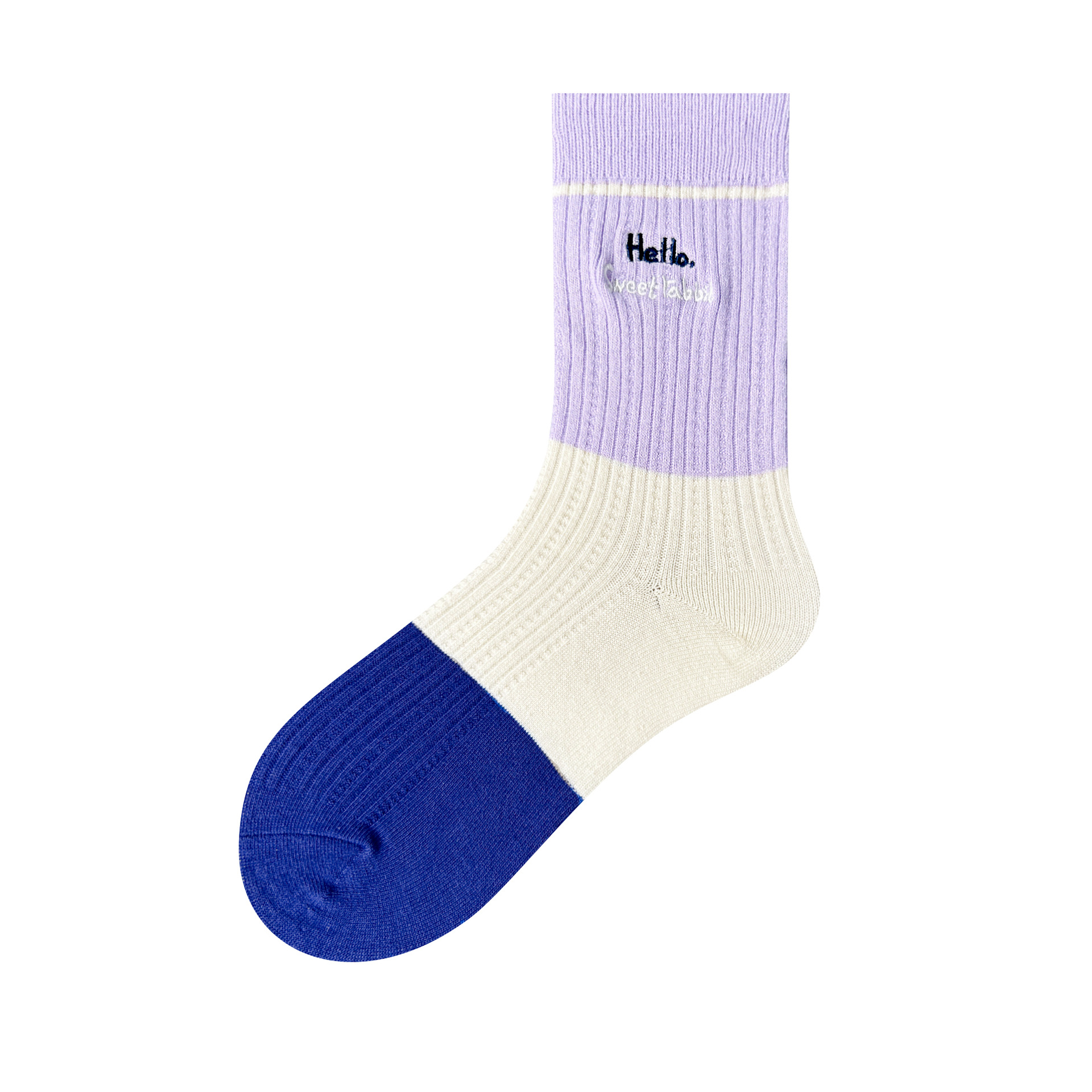 诸暨袜子秋冬新款女袜韩系蓝紫拼接刺绣条纹百搭潮流女士中长筒袜