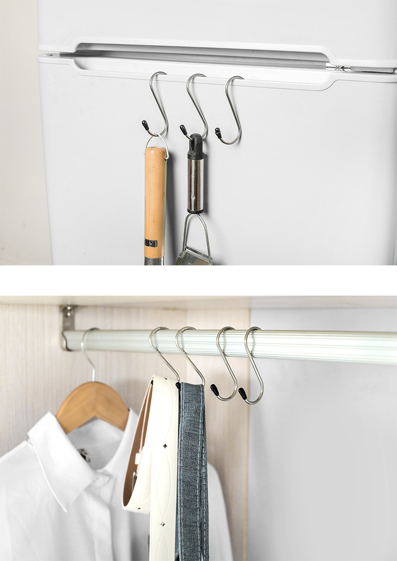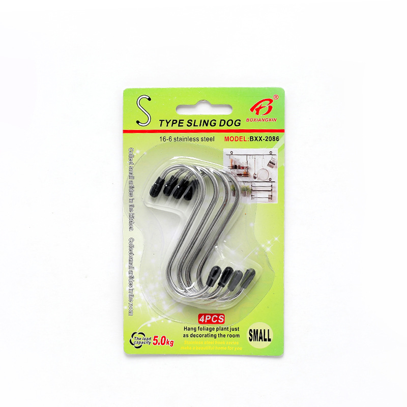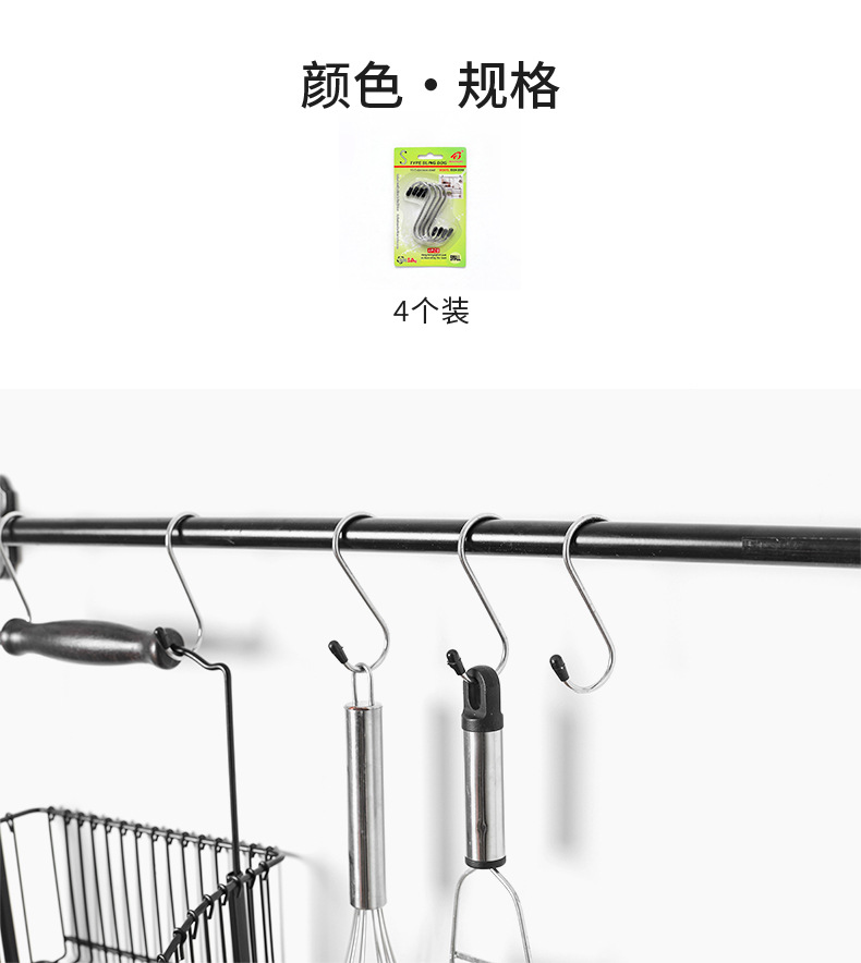 4个装不锈钢S型挂钩多功能挂钩s钩子 厨房浴室多用s形勾金属S钩