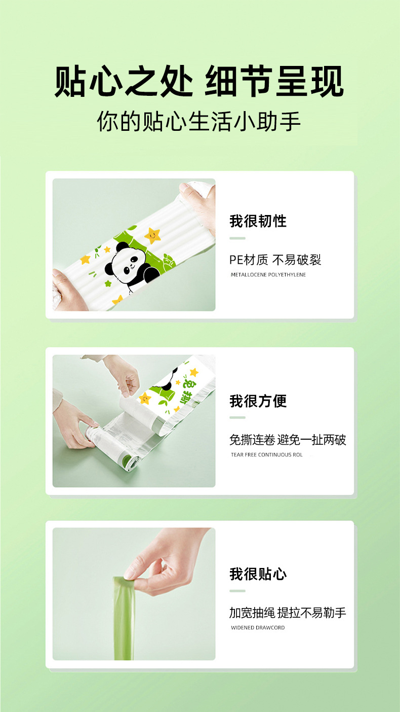 免撕抽绳垃圾袋家用手提式塑料袋加厚厨房卡通印花熊猫垃圾袋批发