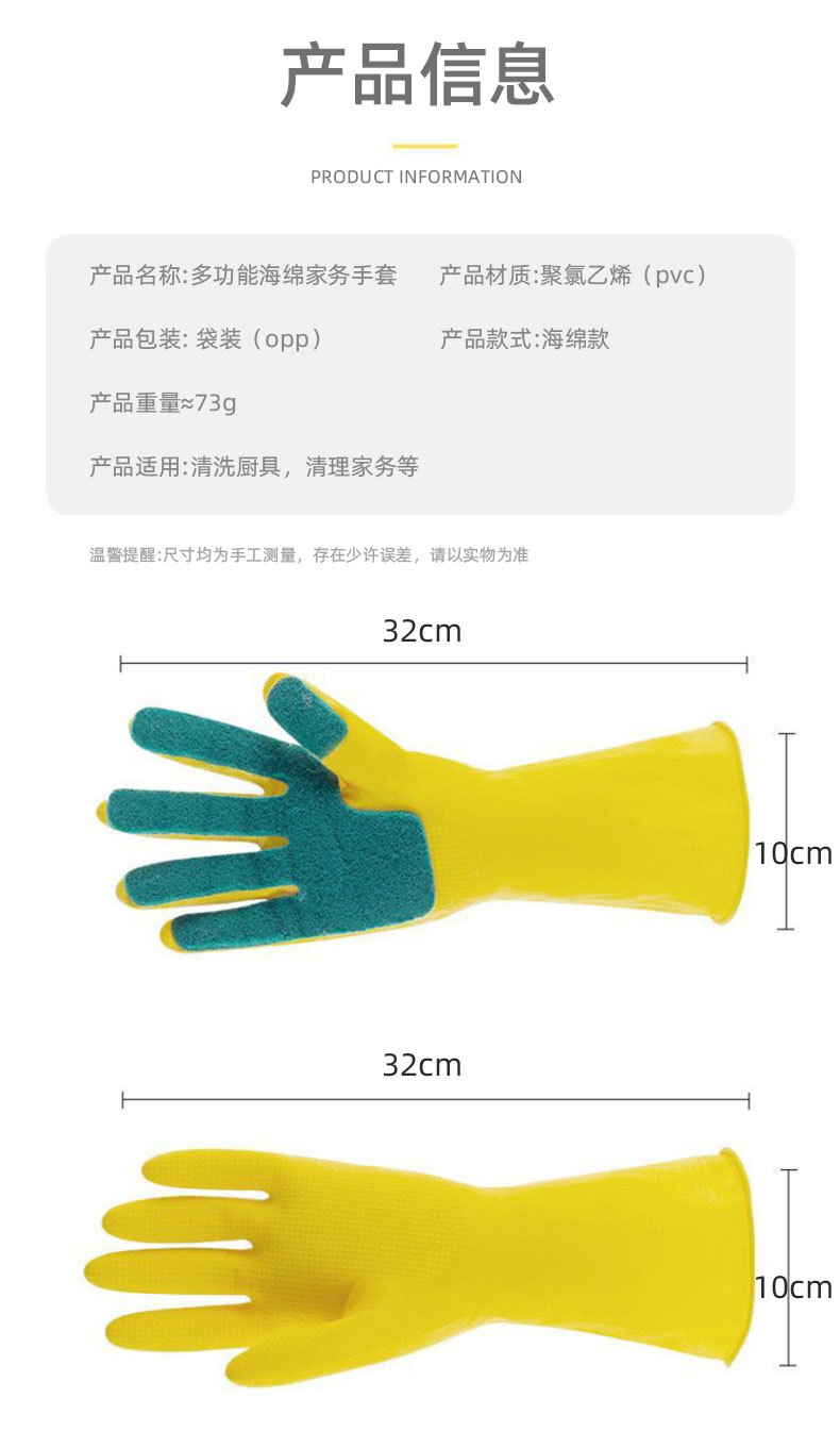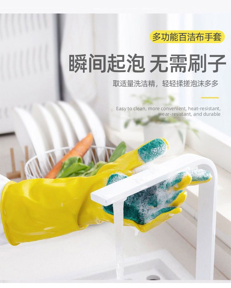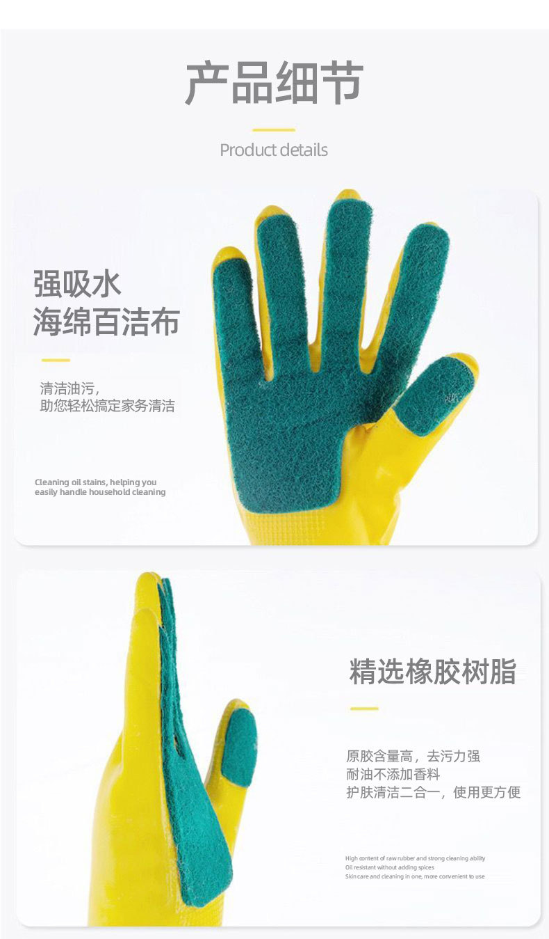 右手百洁手套洗碗清洁布厨房百洁布抹布刷锅防水海绵家务手套乳胶