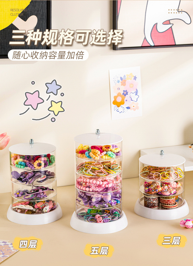 儿童发饰收纳盒多层旋转宝宝发卡头饰夹子整理女孩头绳皮筋首饰盒