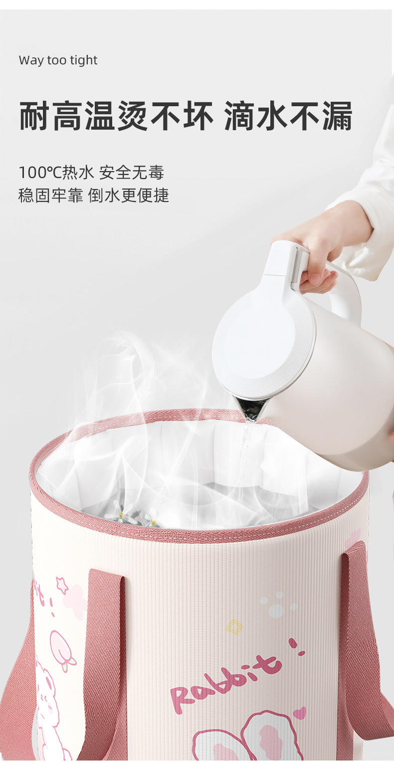 可爱兔折叠泡脚袋高深过小腿家用便携式足浴神器洗脚盆保温泡脚桶