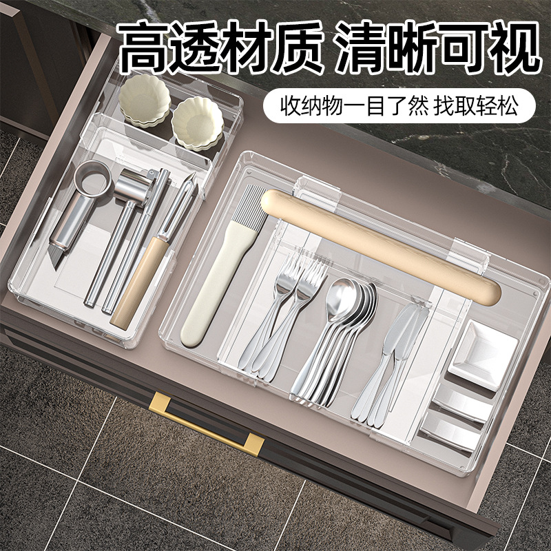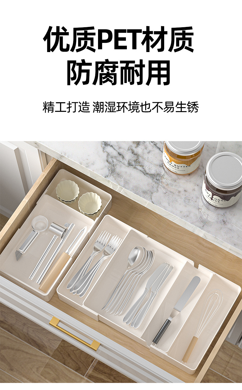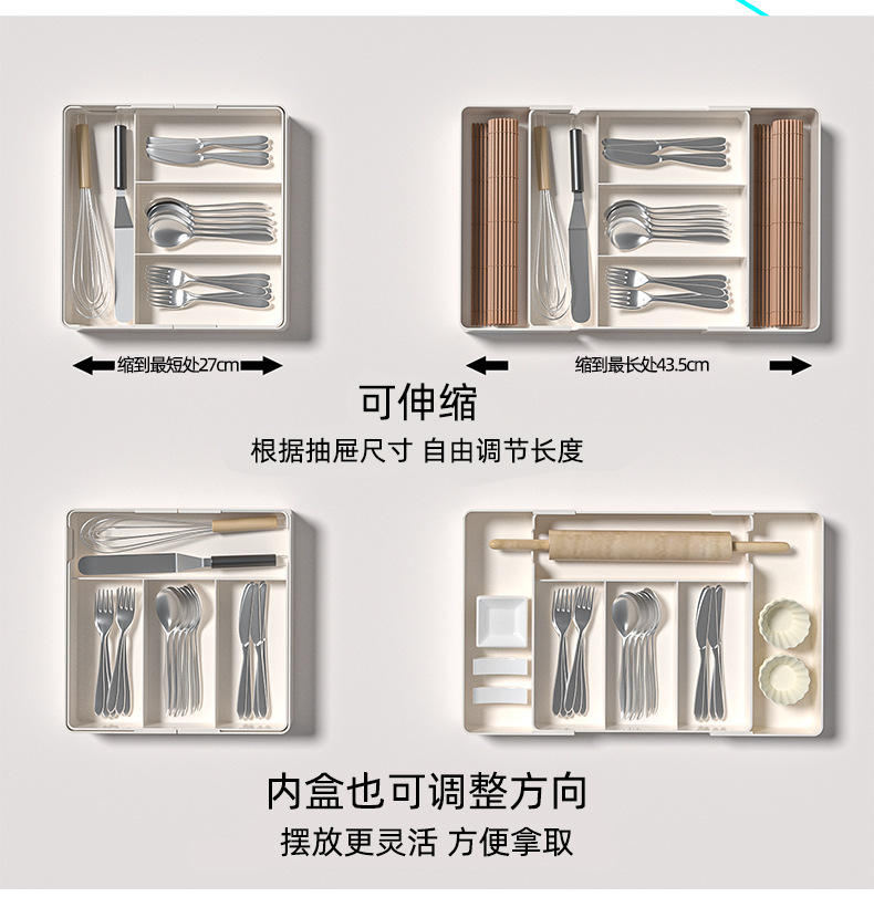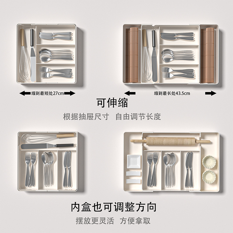 抽屉分格可伸缩收纳盒整理盒内置分隔整理盒餐具筷子勺子厨房置物