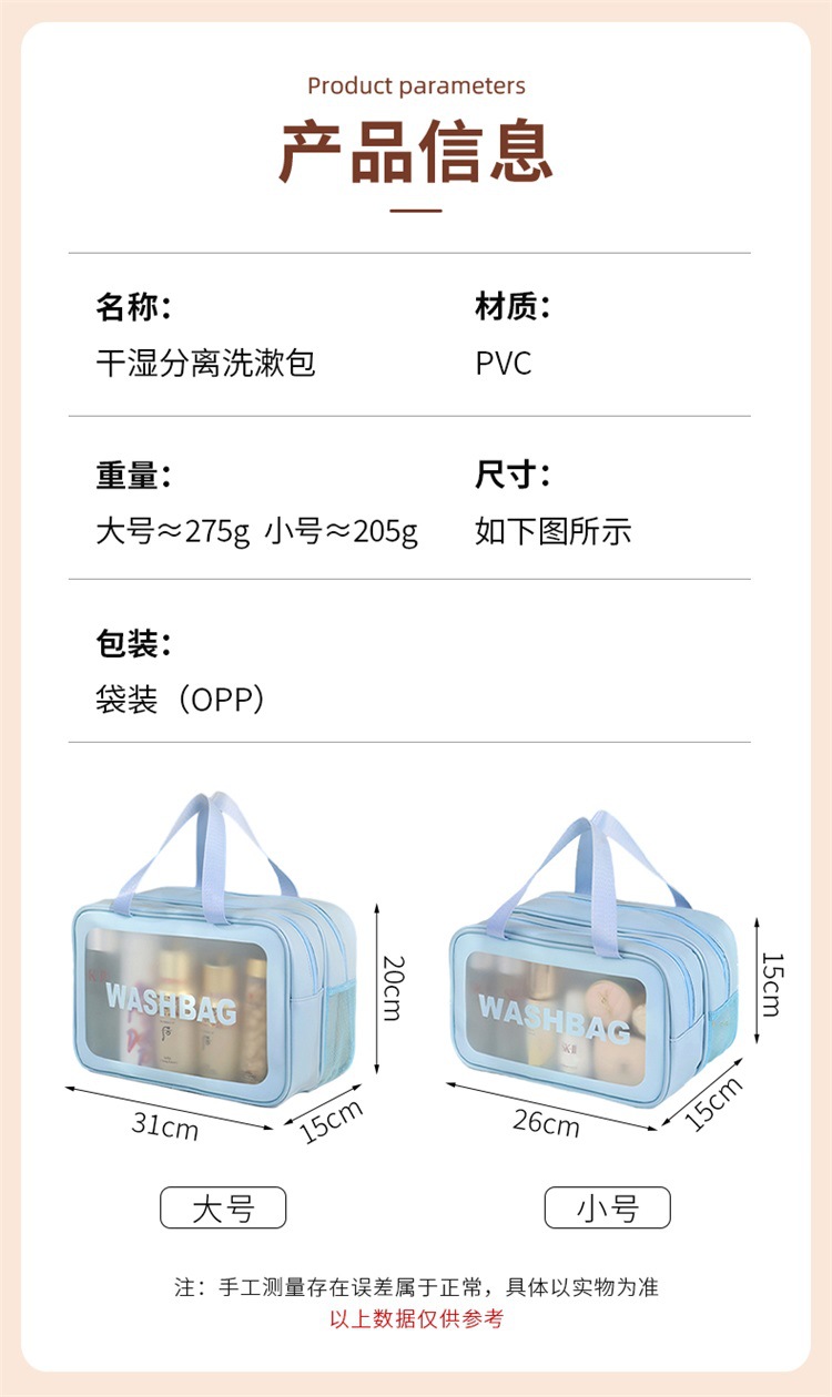 干湿分离洗漱包大容量收纳包健身游泳旅行便携双层pvc手提化妆包