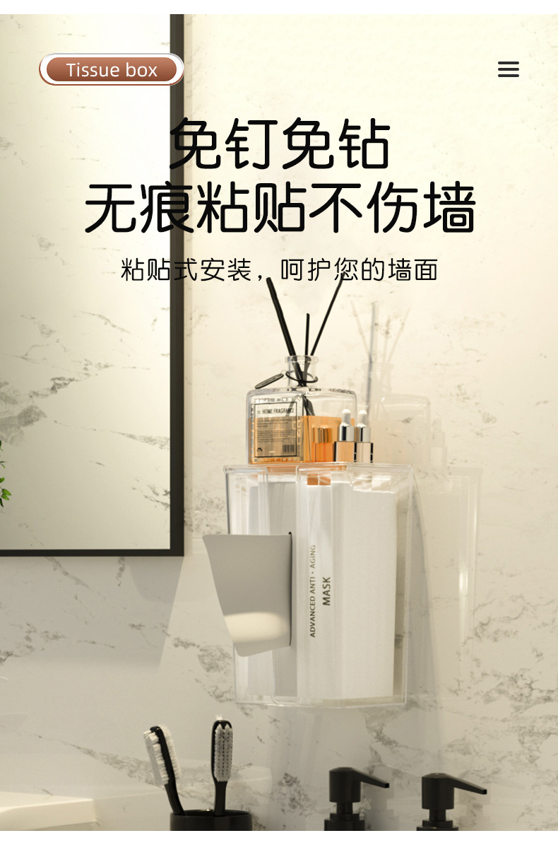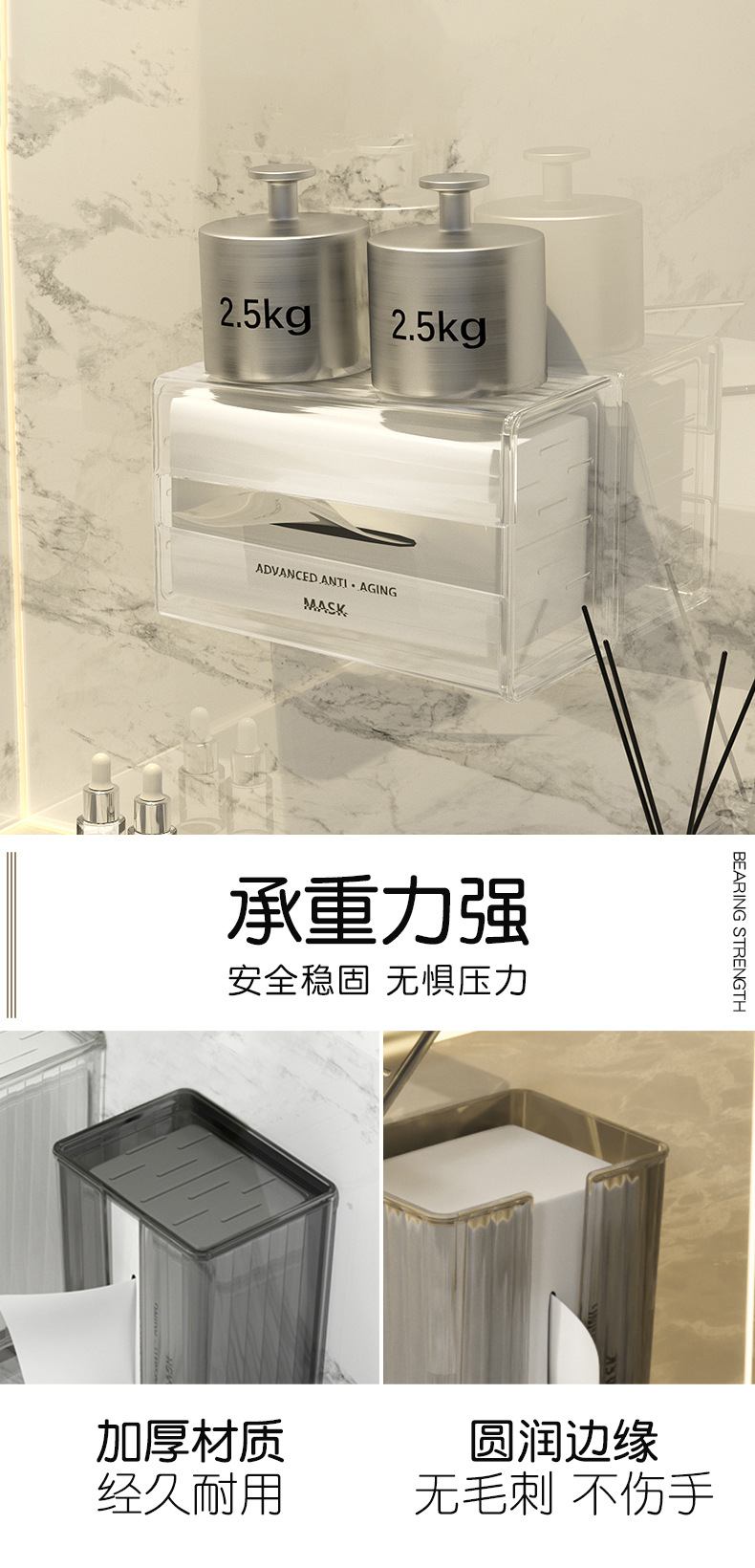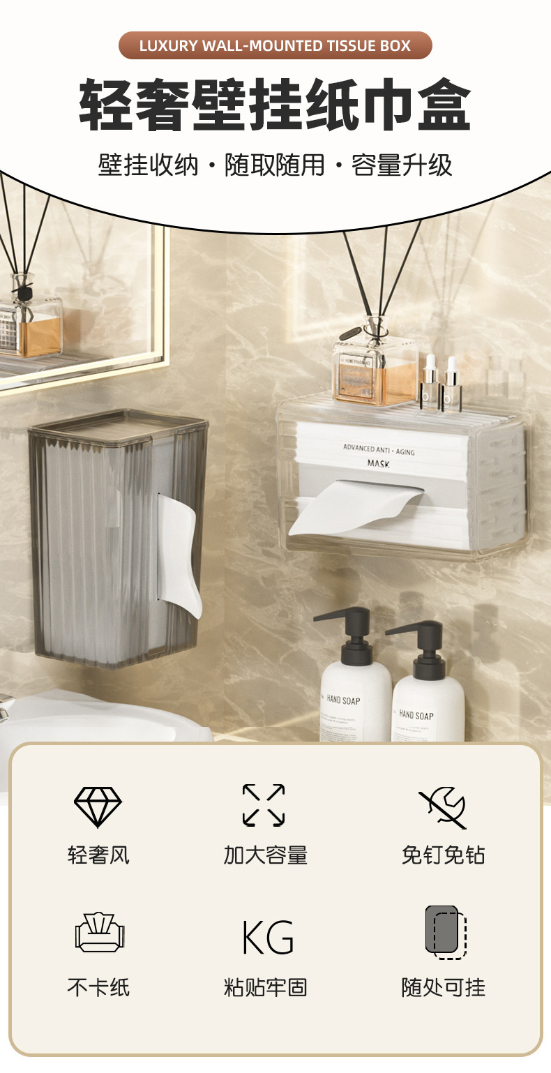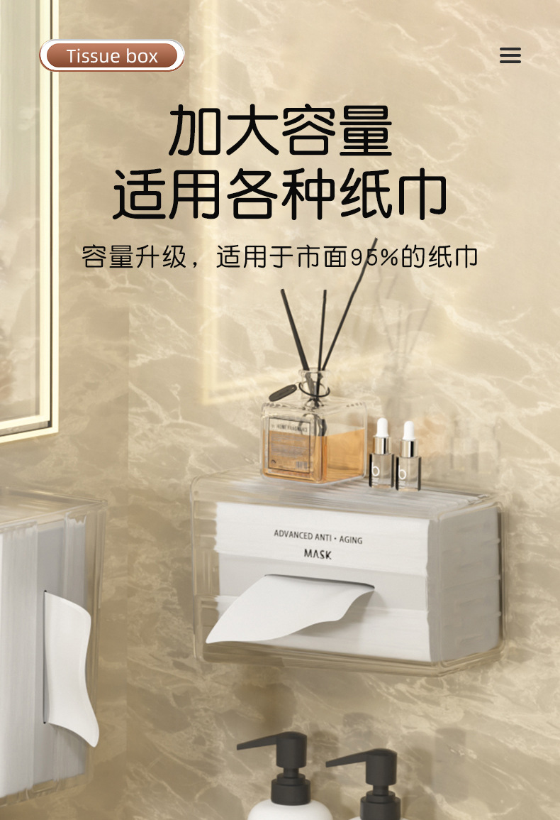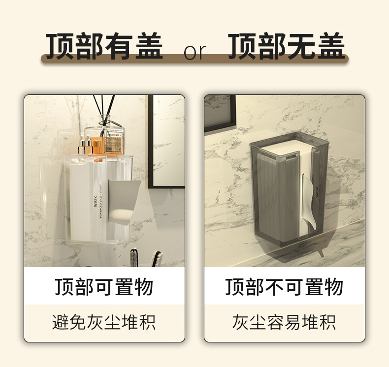 纸巾盒壁挂式面巾纸洗脸巾收纳厕所卫生间厨房倒挂抽纸盒轻奢透明
