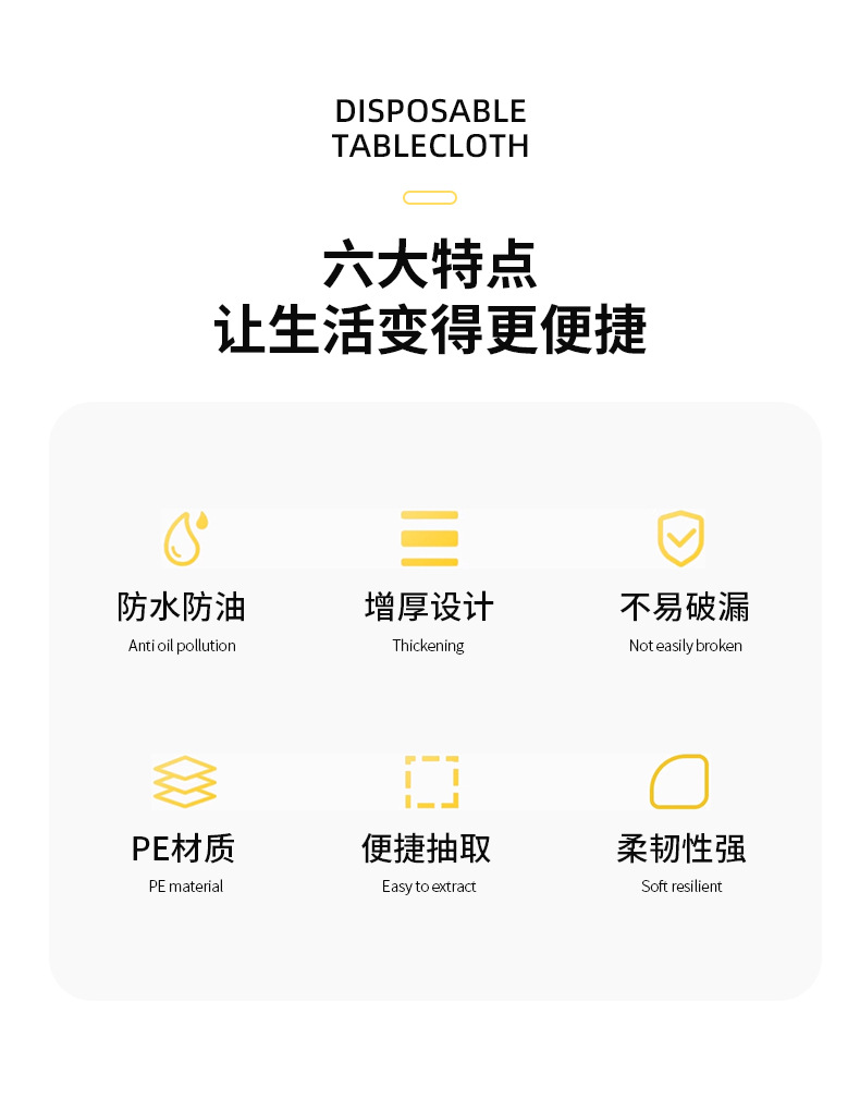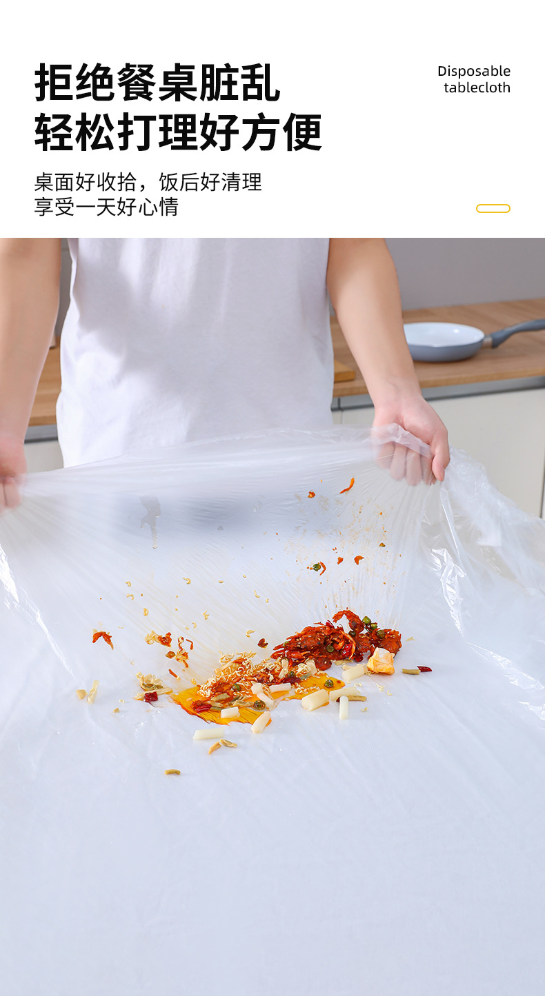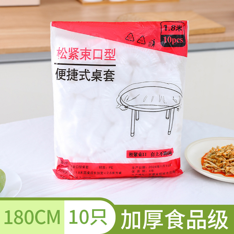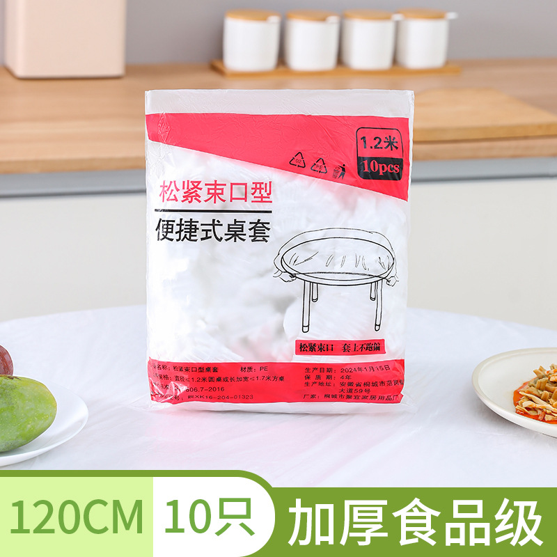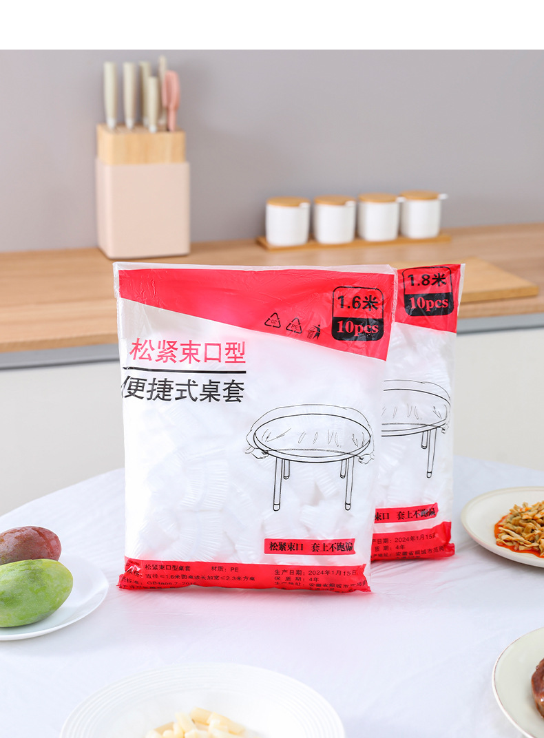 一次性束口桌布加厚防水桌布透明防油自动束口方桌聚餐酒席桌布
