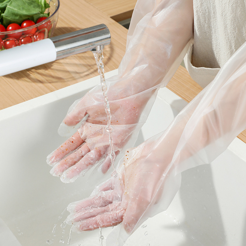 加长家务手套一次性薄膜加批发餐饮染发透明厨房家用加长款亚马逊