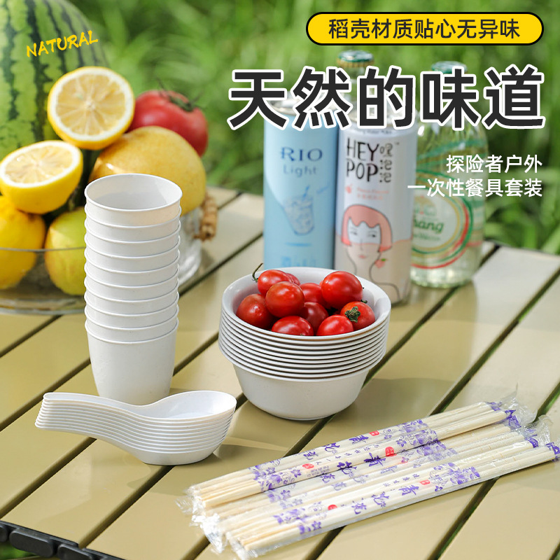 户外一次性餐具旅行野餐露营烧烤派对家用高颜值稻壳碗碟盘套装