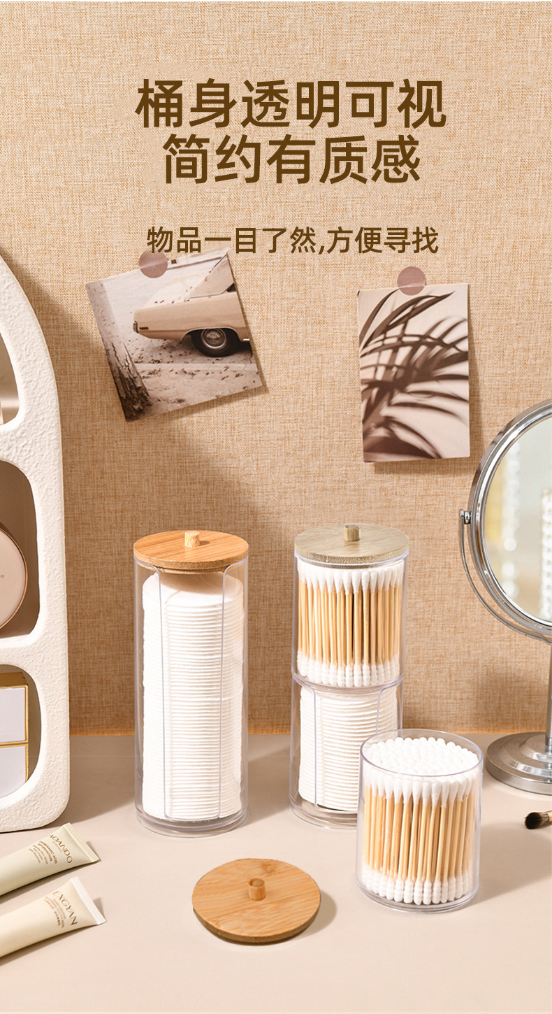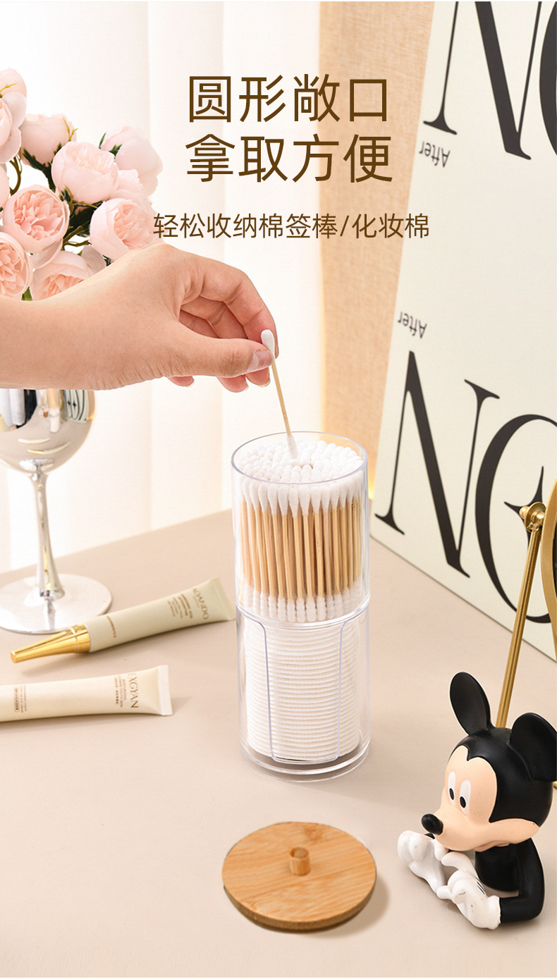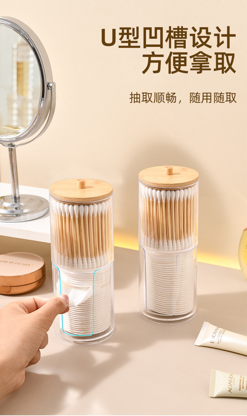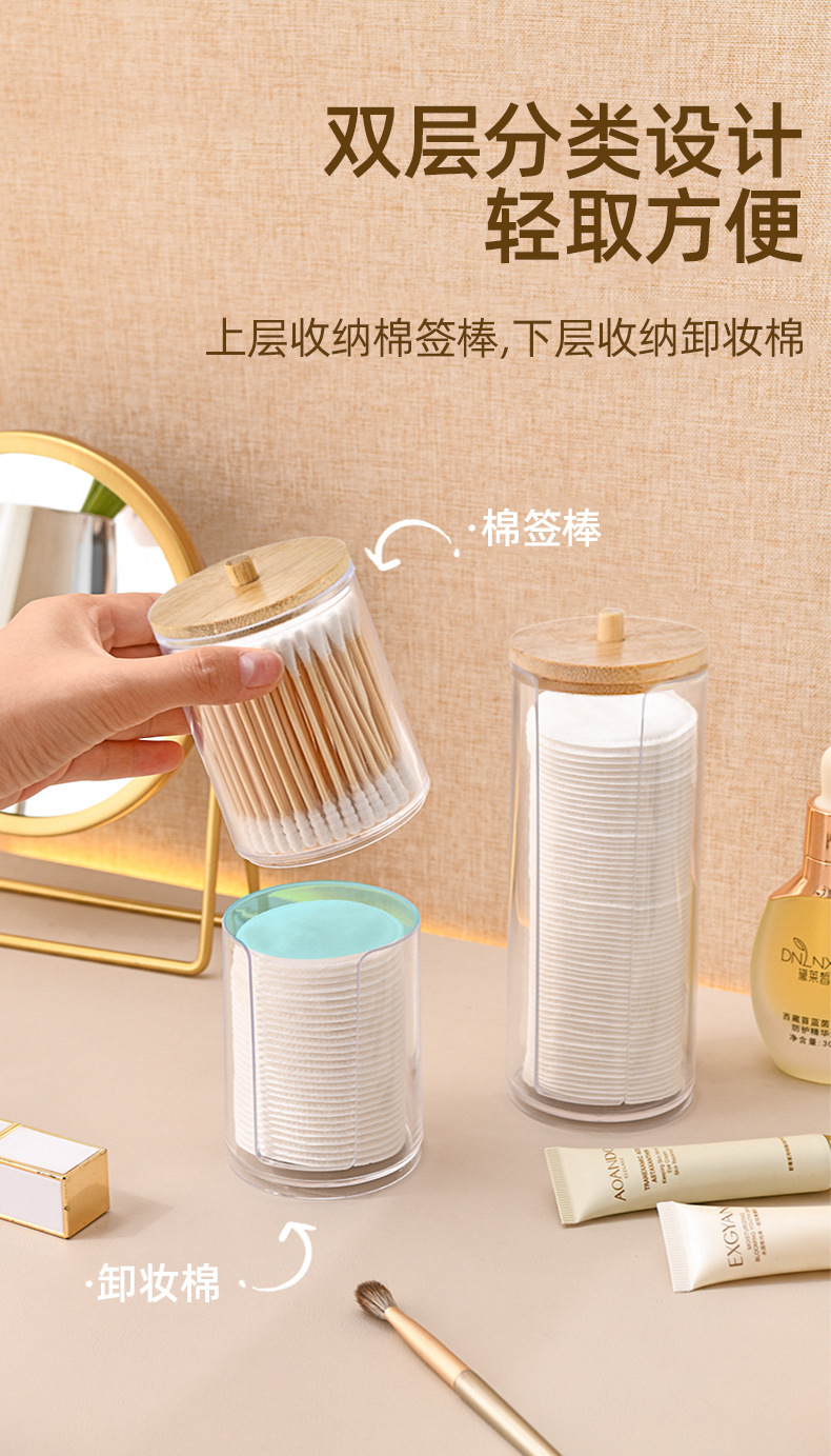 二合一双层圆形棉签盒卸妆棉收纳盒家用透明桌面首饰化妆棉收纳盒