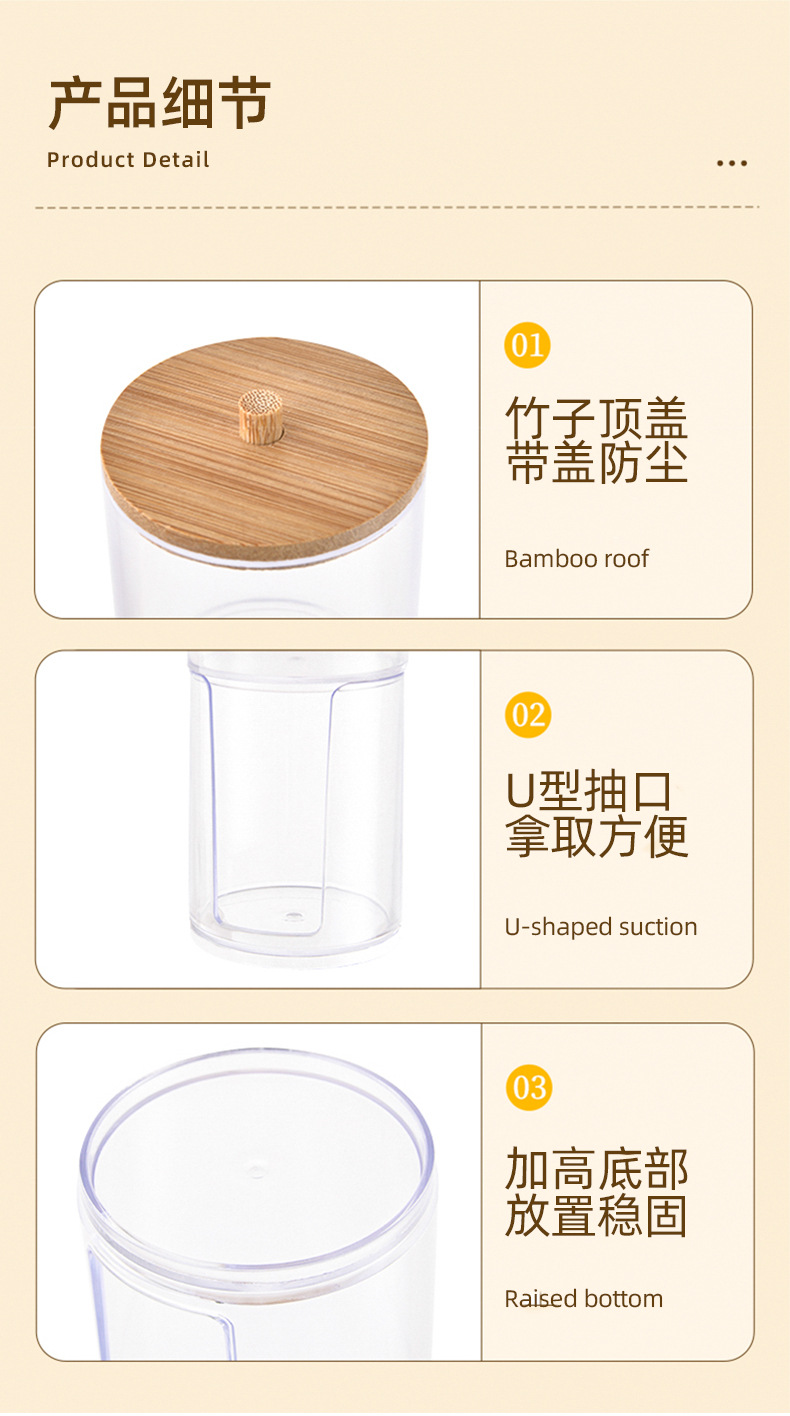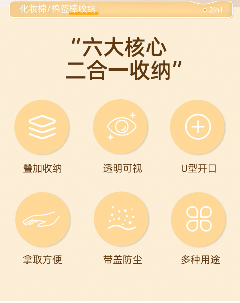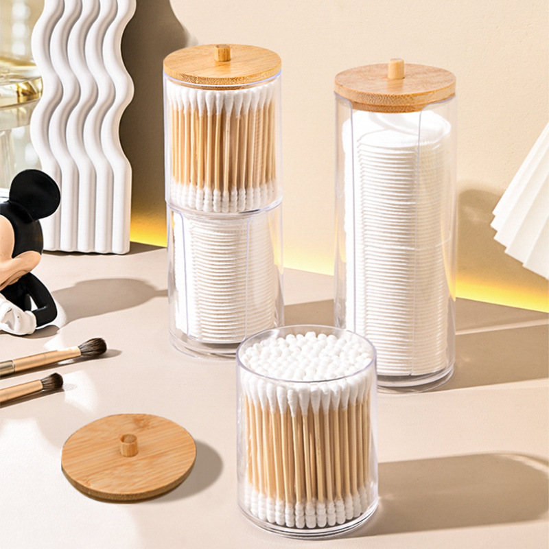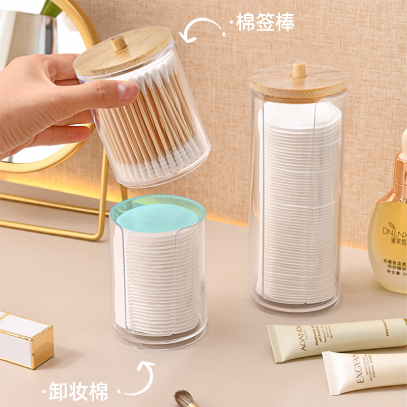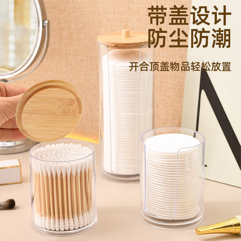 二合一双层圆形棉签盒卸妆棉收纳盒家用透明桌面首饰化妆棉收纳盒