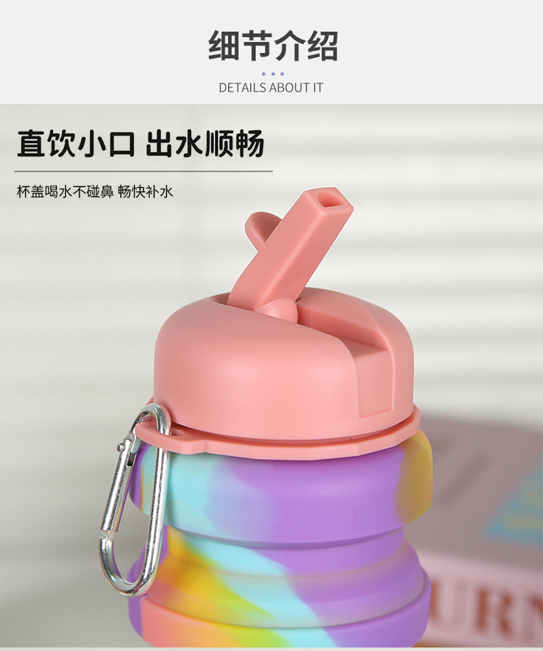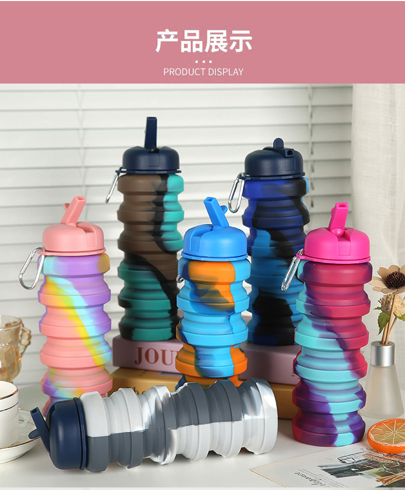 跨境现货食品级硅胶折叠水杯户外便携伸缩饮水杯创意迷彩运动水壶