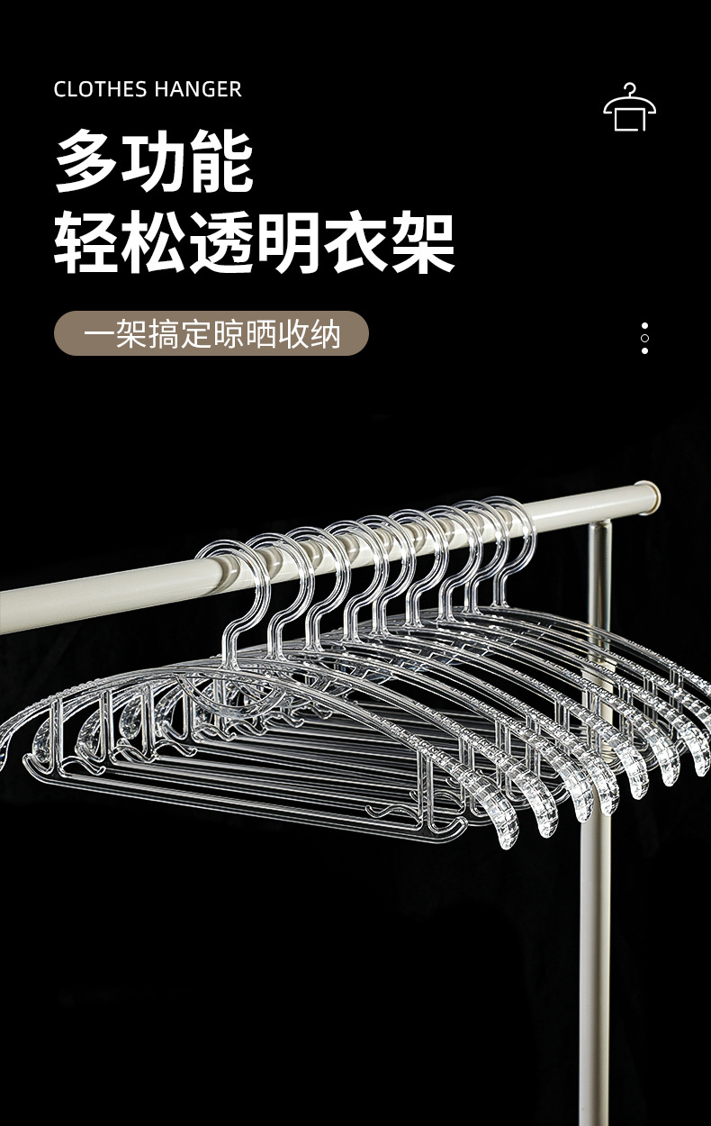 亚克力透明衣架家用挂衣无痕防滑衣服挂架宽肩服装店专用晾衣撑子