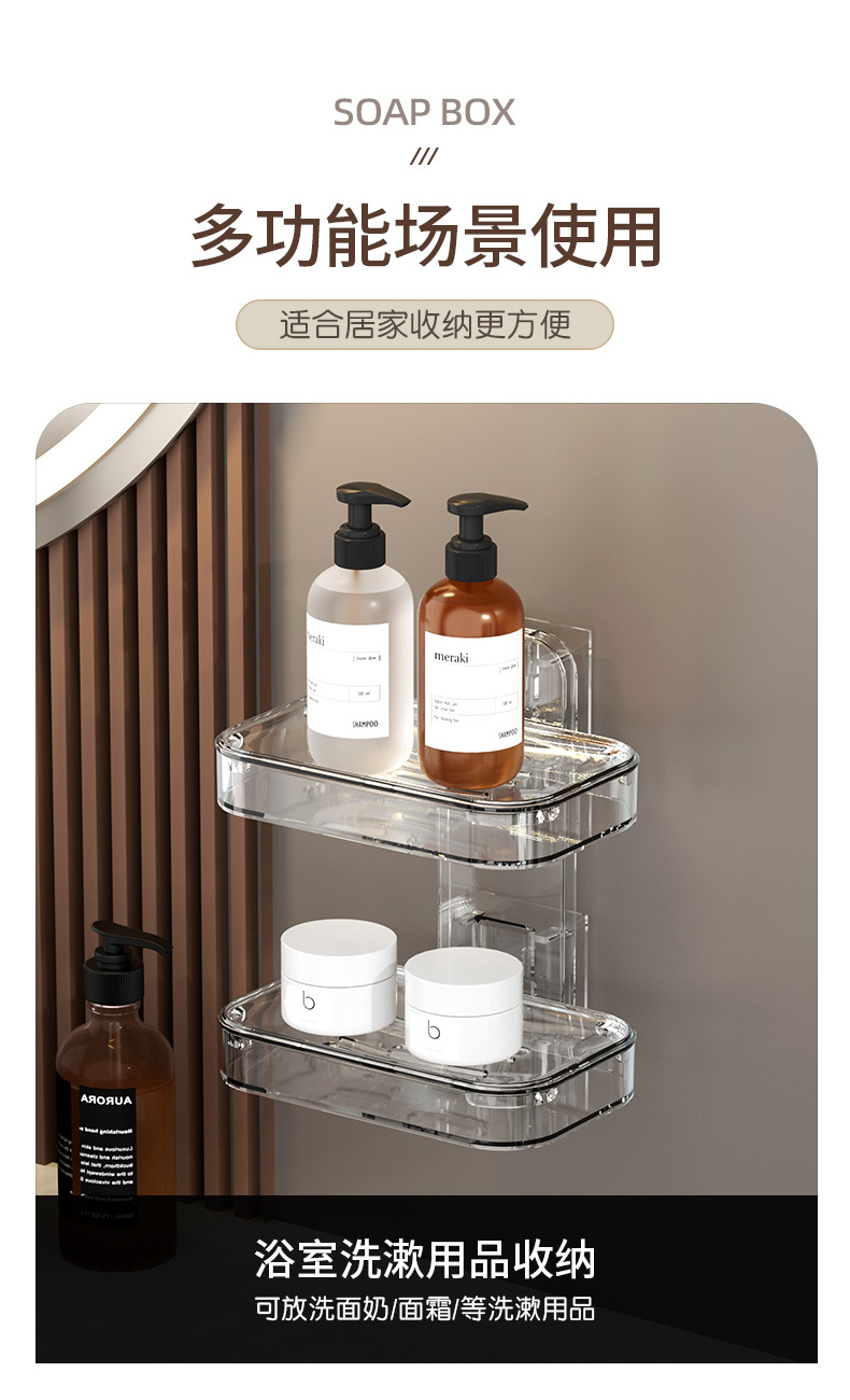 轻奢肥皂盒吸盘壁挂式免打孔沥水卫生间排水香皂盒置物架家用浴室