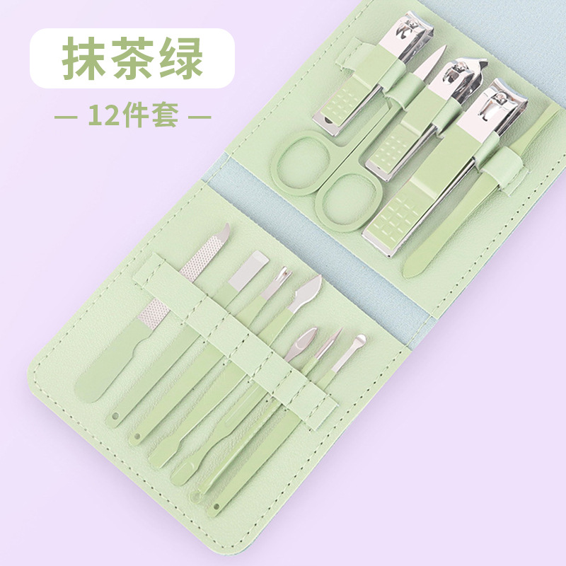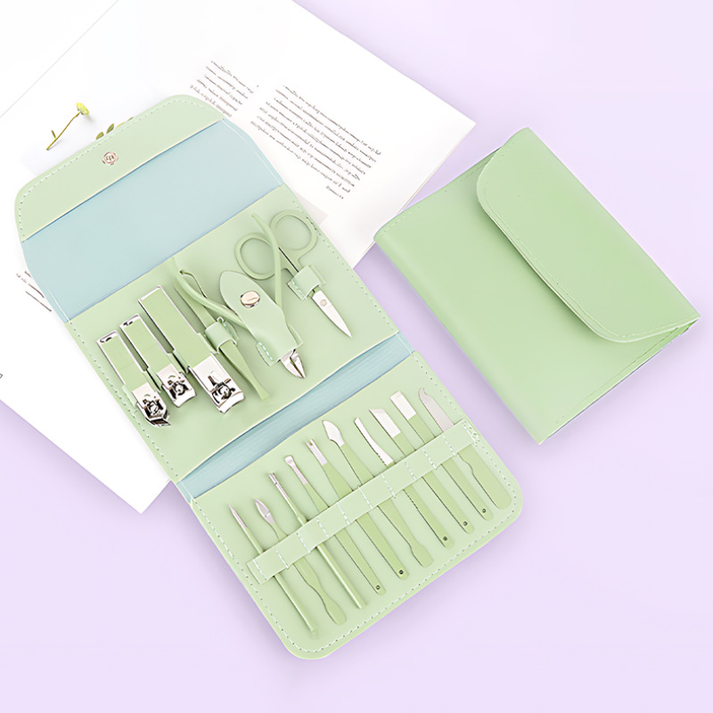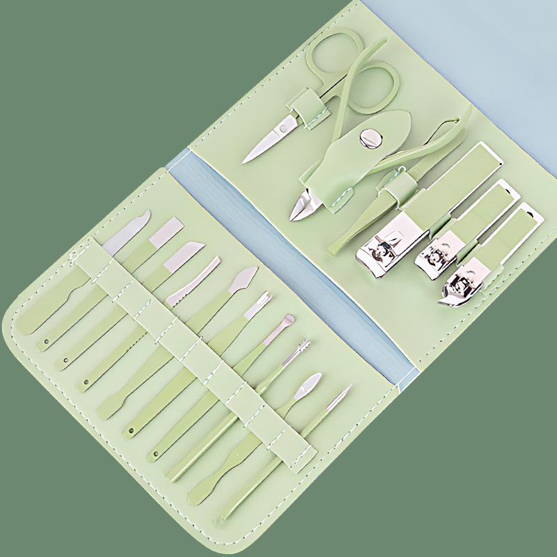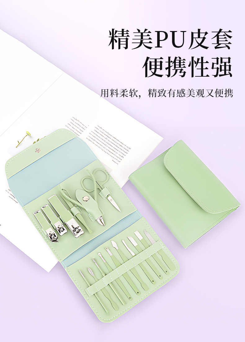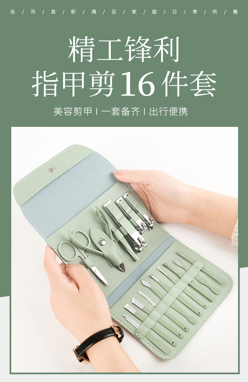 修甲套装16件套抹茶绿折包美甲修脚刀剪护理套件指甲钳工具全套
