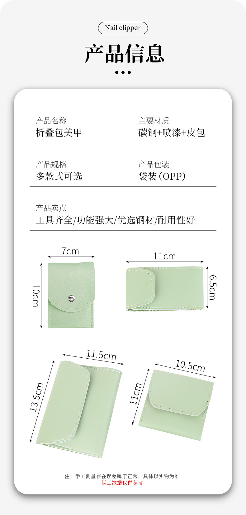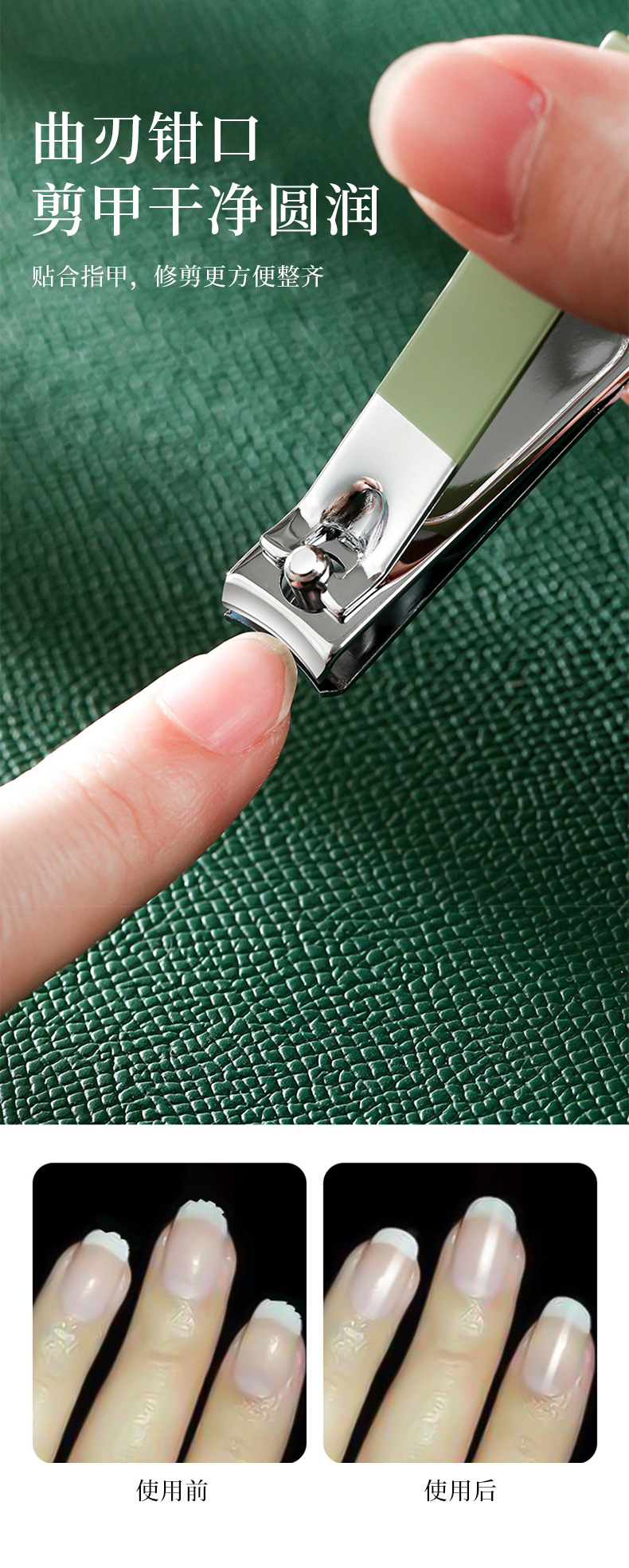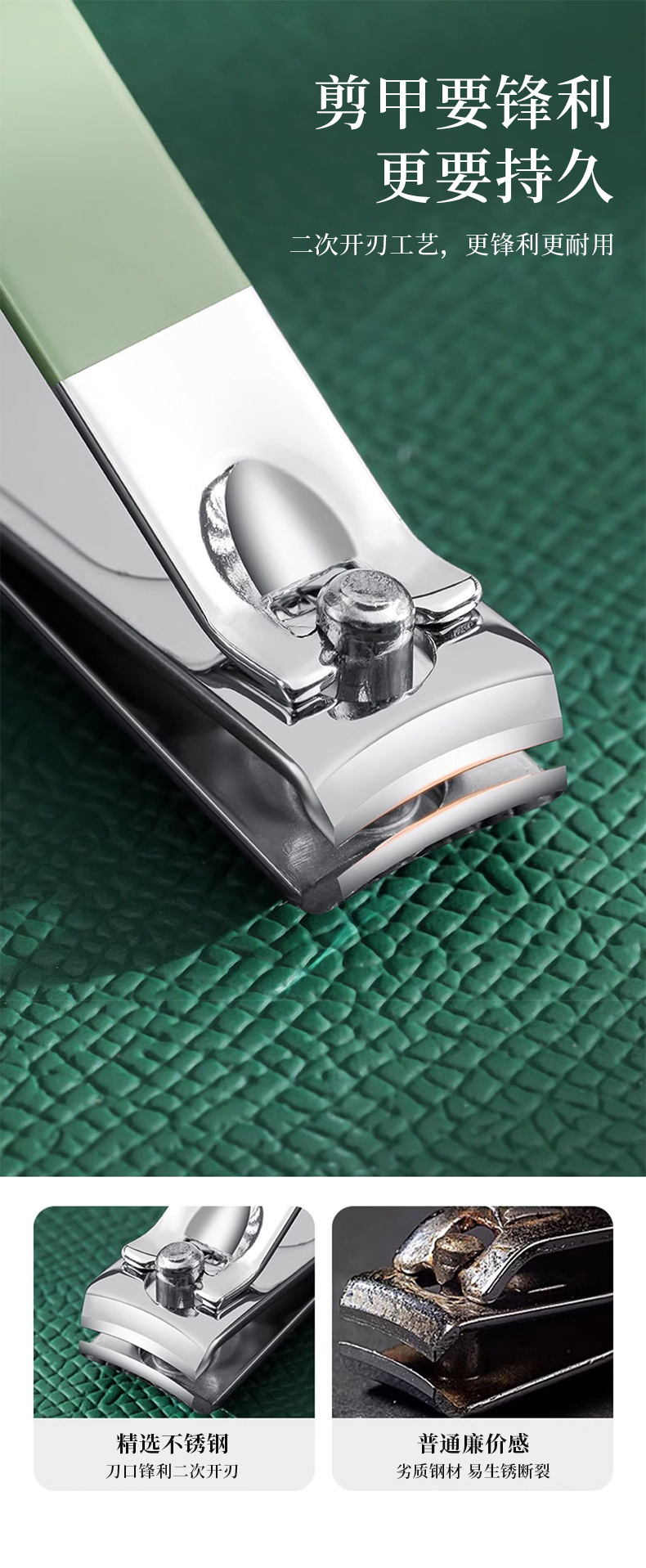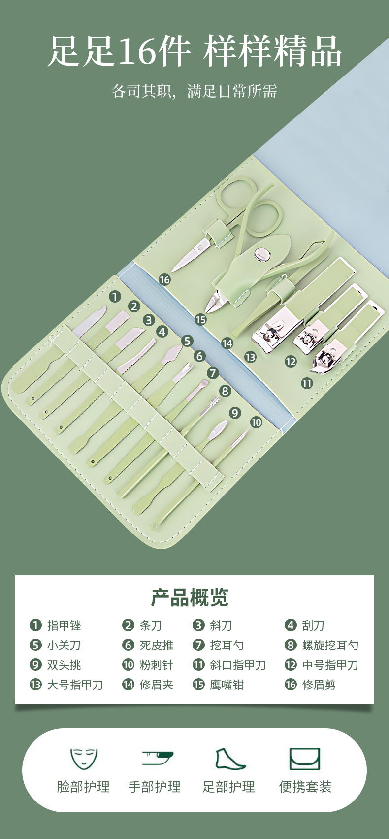 修甲套装16件套抹茶绿折包美甲修脚刀剪护理套件指甲钳工具全套