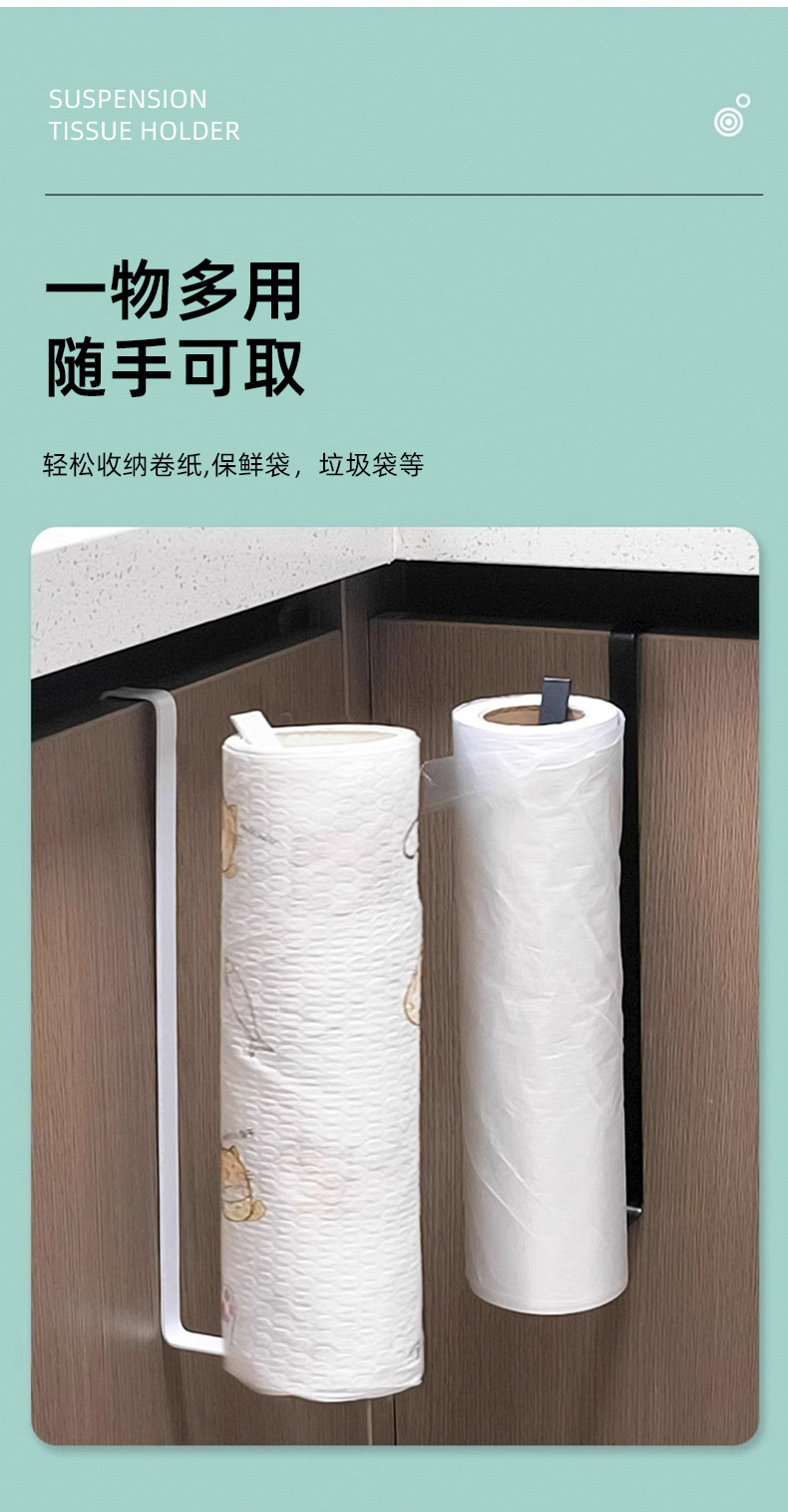 免打孔厨房纸巾架橱柜下挂卷纸架置物架专用纸吸油保鲜膜收纳挂架