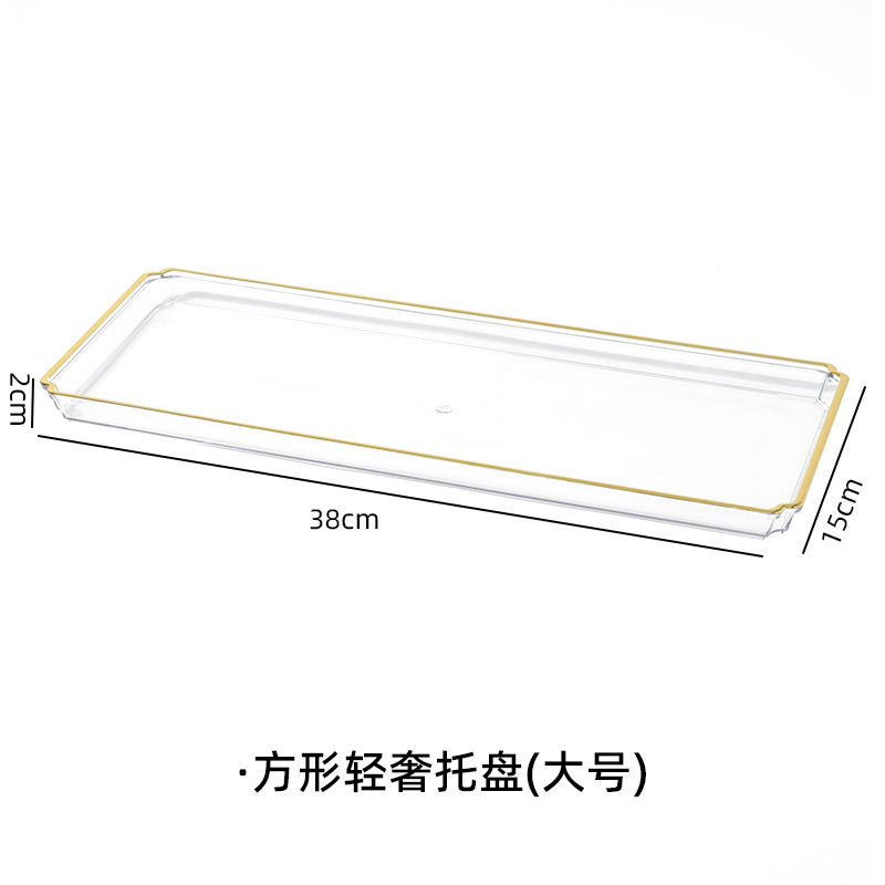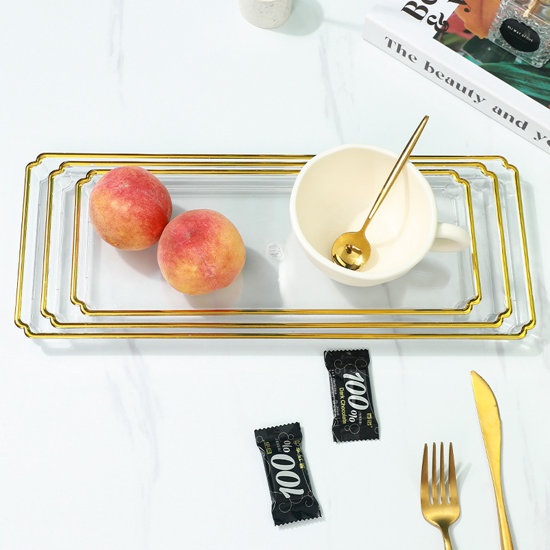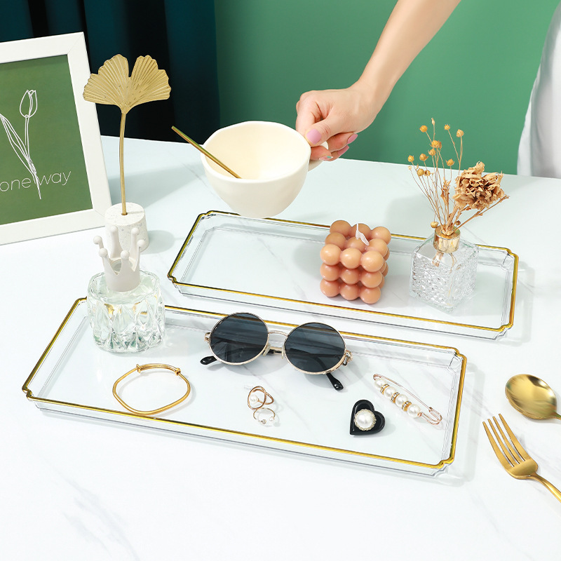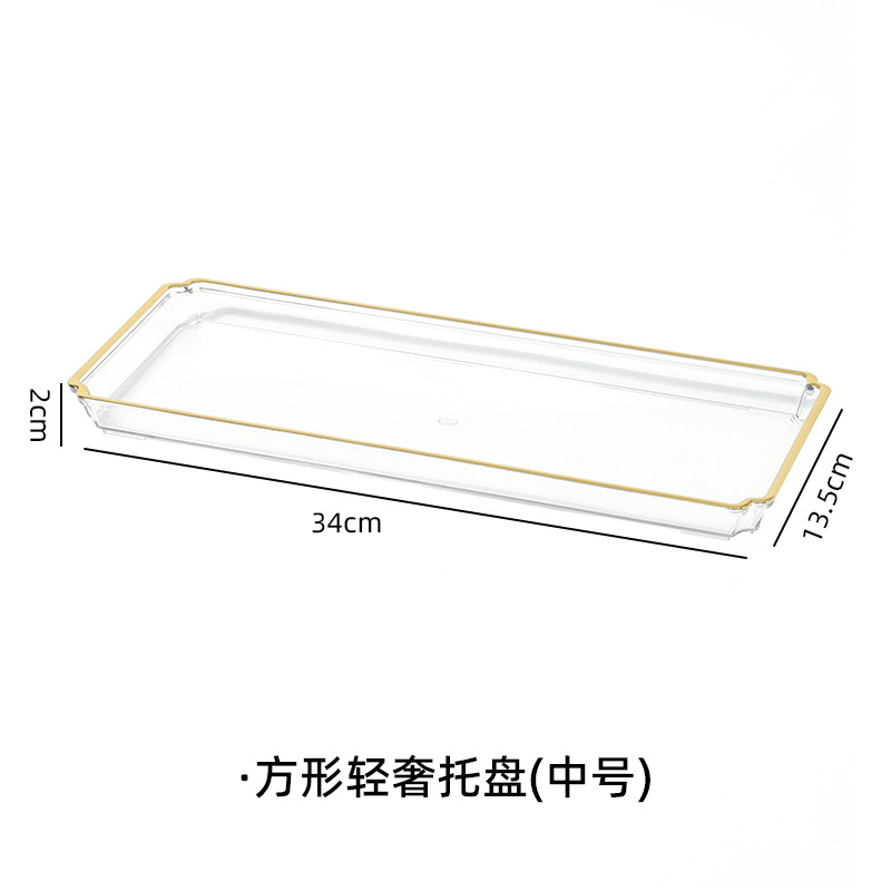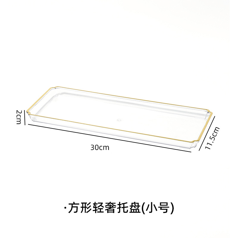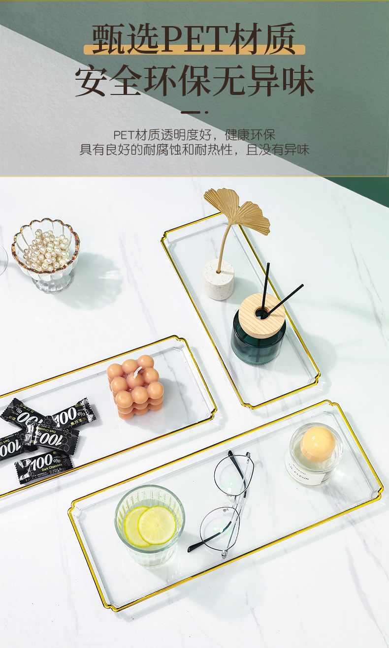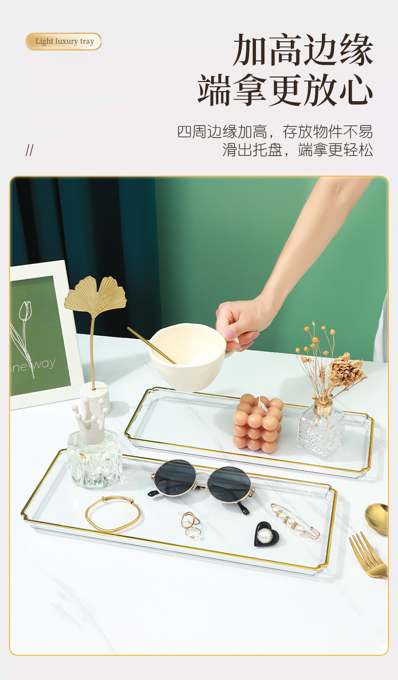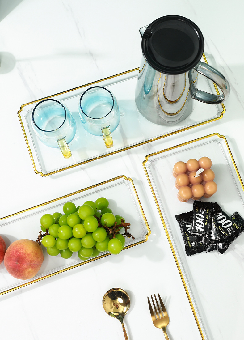 北欧轻奢长方形茶盘托盘家用放茶杯水杯客厅茶几透明金边托盘餐盘