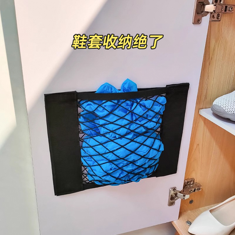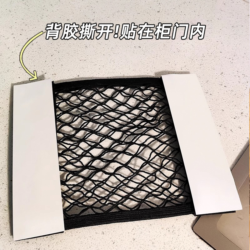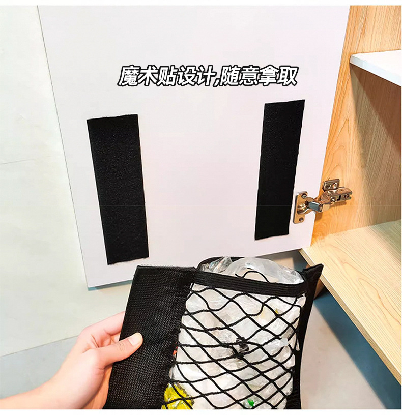 垃圾袋收纳网兜壁挂式厨房柜门内放塑料袋神器胶贴网袋大容量挂袋