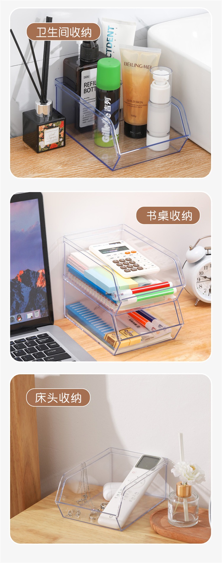 桌面收纳盒可叠加杂物整理盒透明敞口塑料盒首饰文具储物盒分隔盒