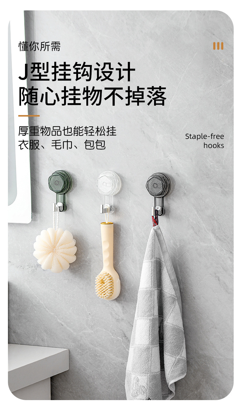 强力吸盘挂钩免打孔浴室门后无痕真空粘胶贴墙卫生间毛巾挂衣粘钩