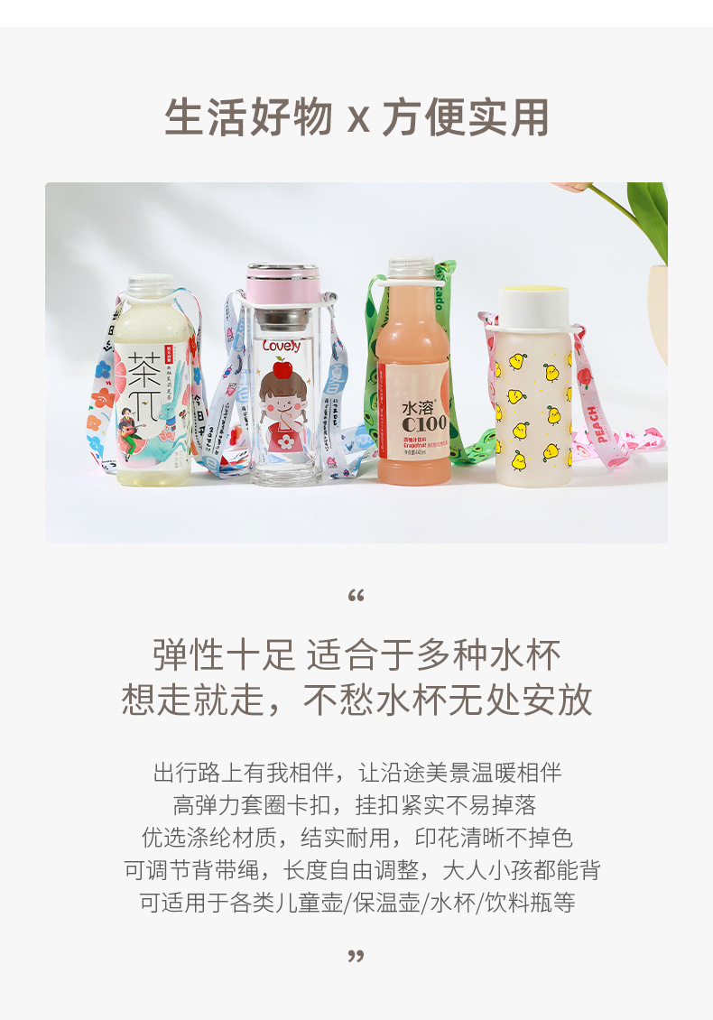 水瓶挂绳便携式矿泉水饮料果汁瓶背带可调节斜跨带通用水杯挂带