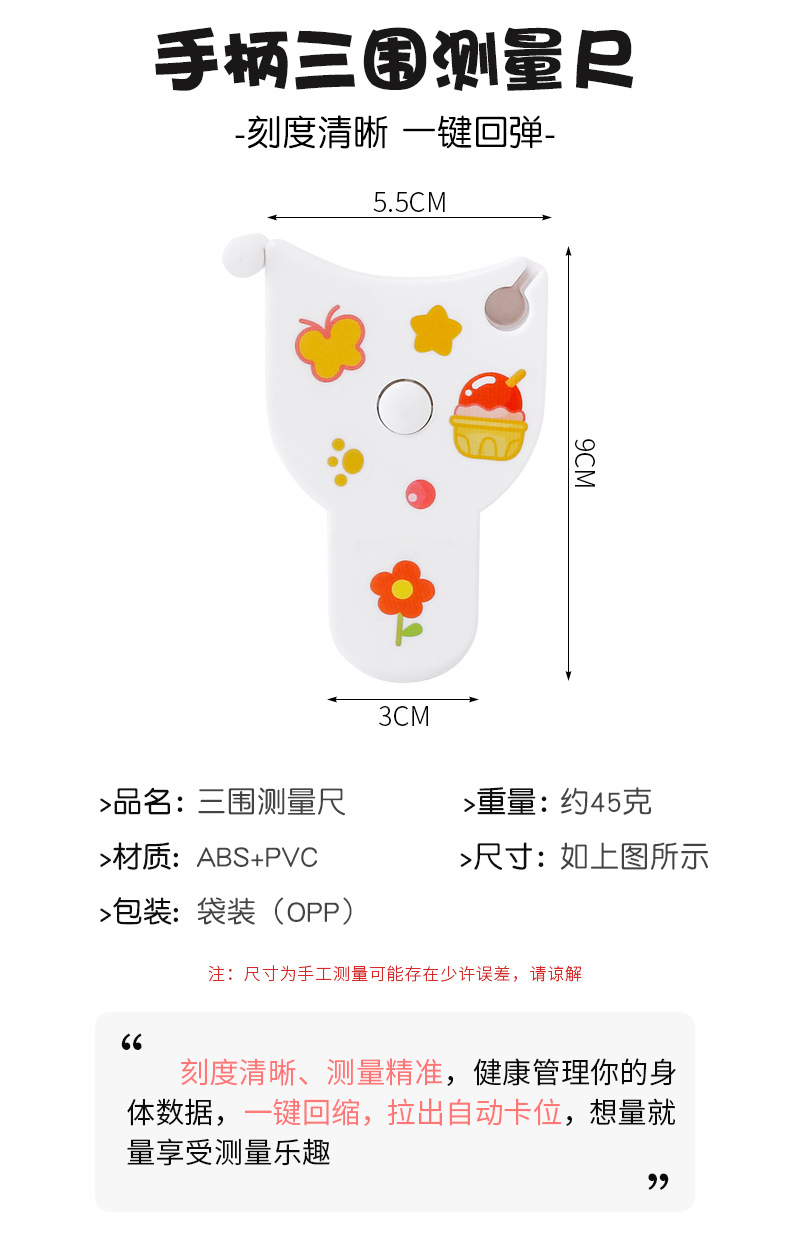 学生三围尺卷尺量尺健身胸围臀围可爱创意便携测量尺子软尺皮尺女
