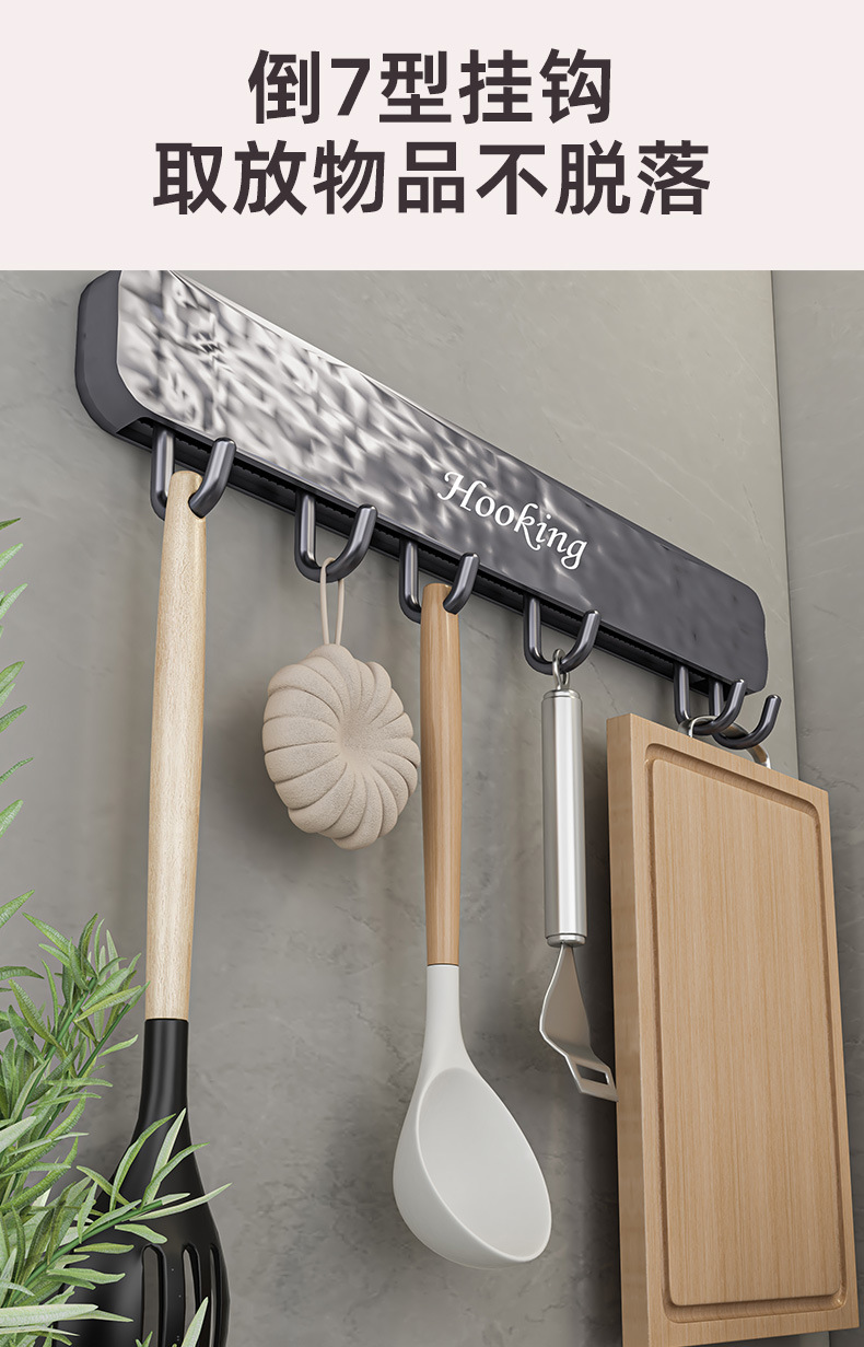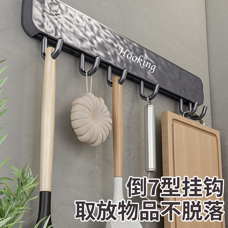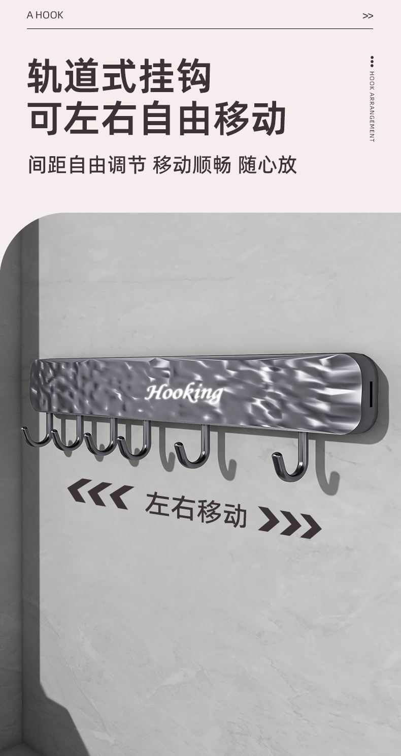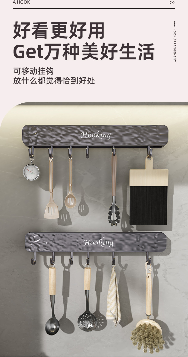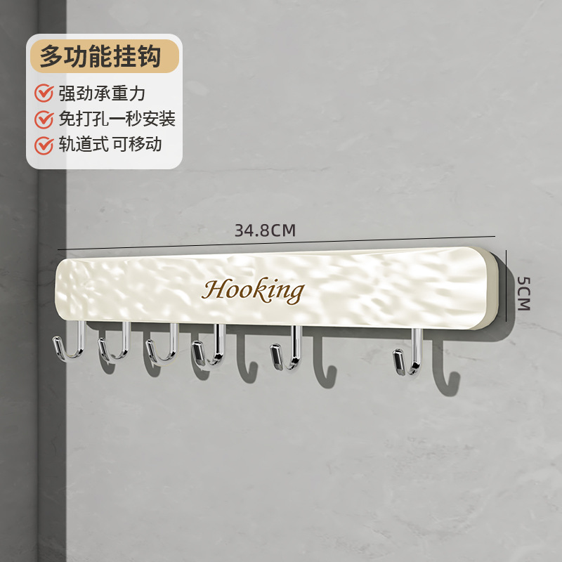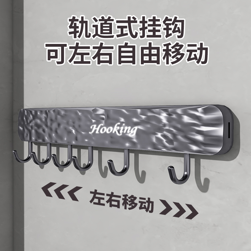 冰川纹免打孔可滑动轨道挂钩厨房橱柜门后一排挂架挂杆粘钩连排钩