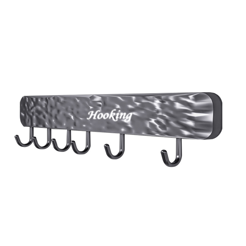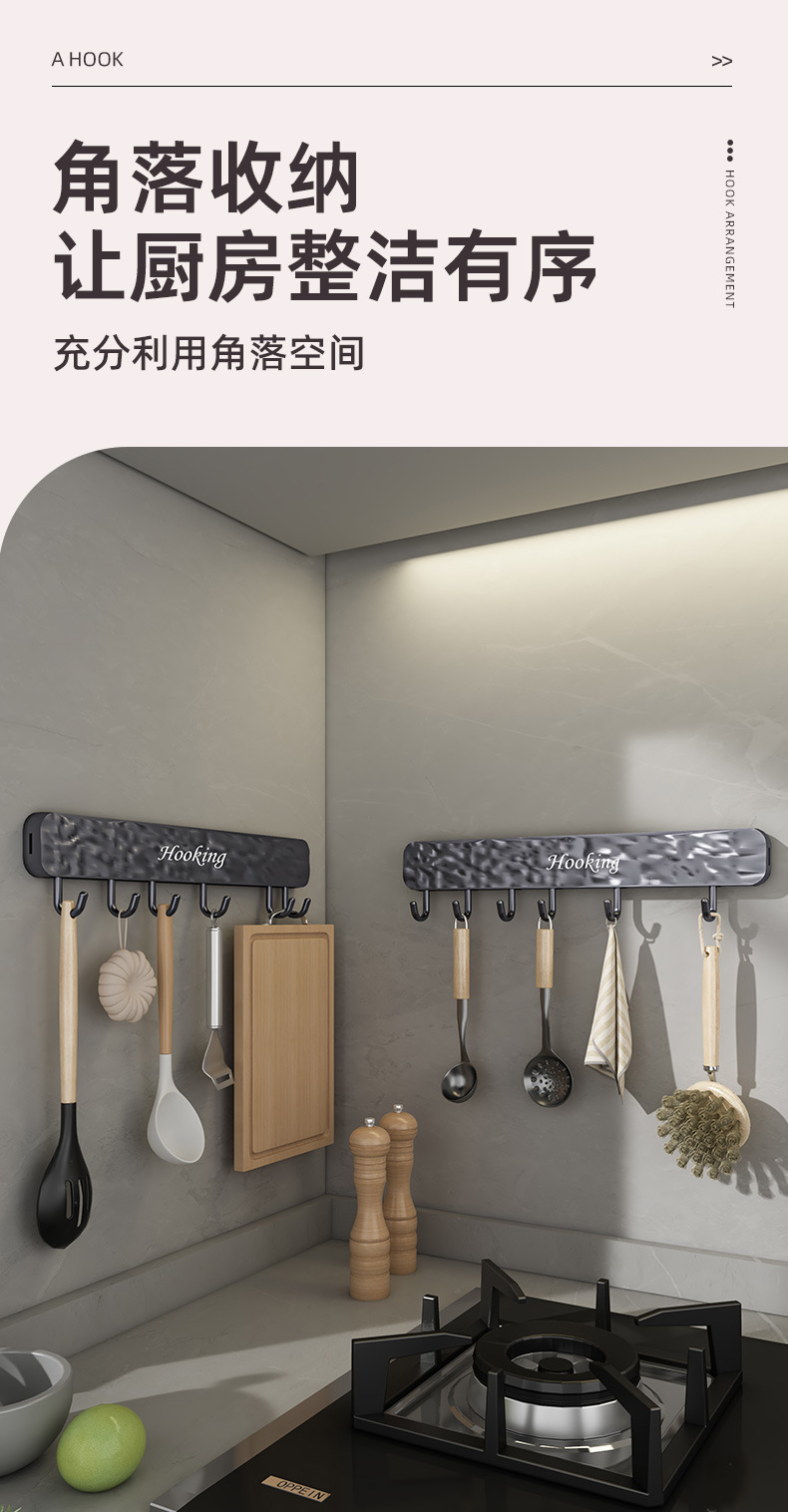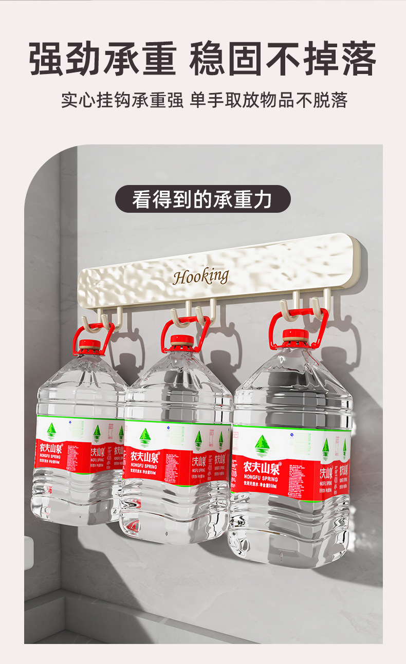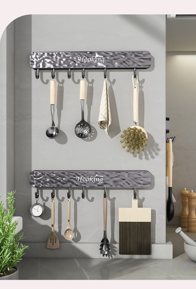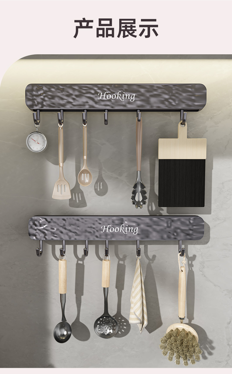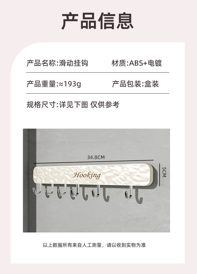 冰川纹免打孔可滑动轨道挂钩厨房橱柜门后一排挂架挂杆粘钩连排钩