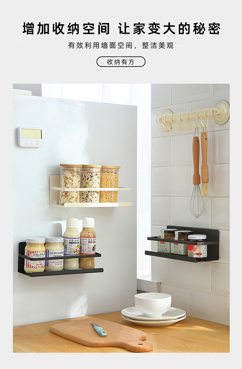 厨房冰箱架子置物架日式双层免打孔家用冰箱微波炉侧挂磁吸收纳架