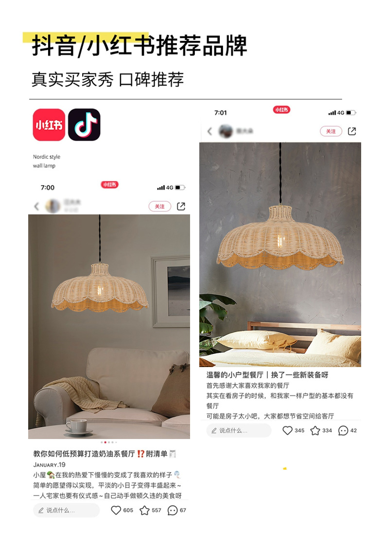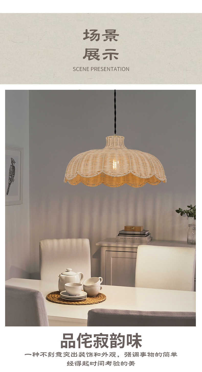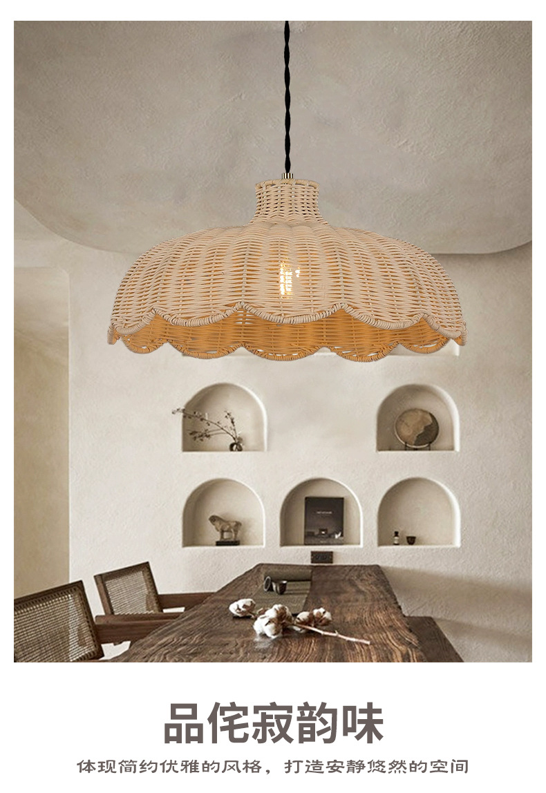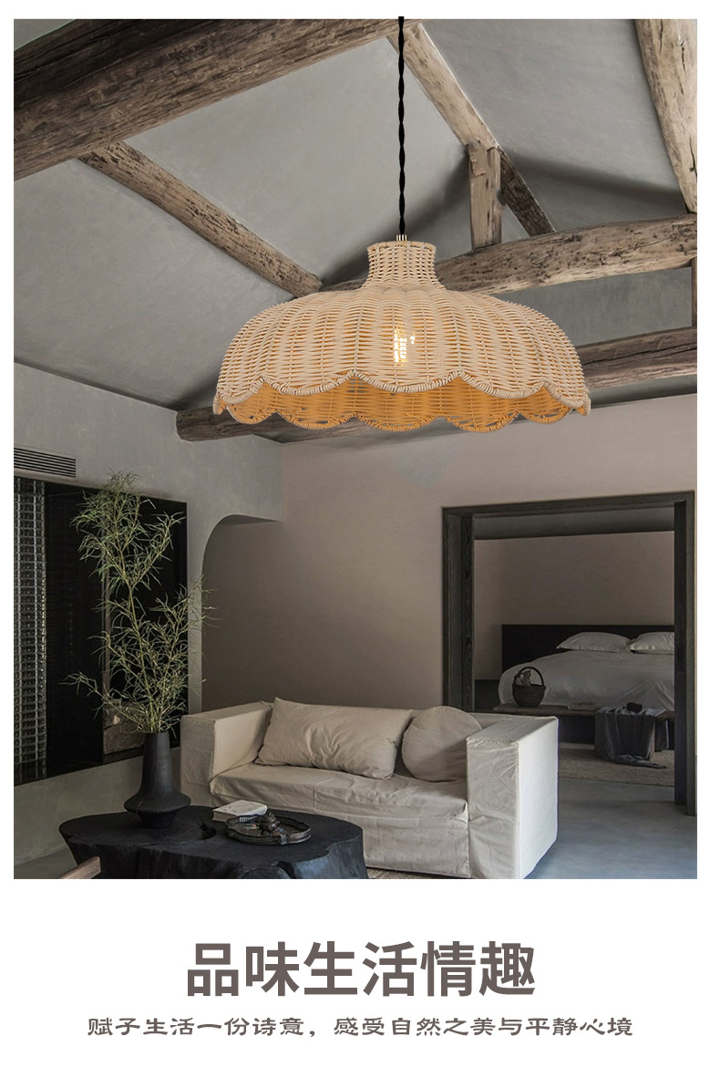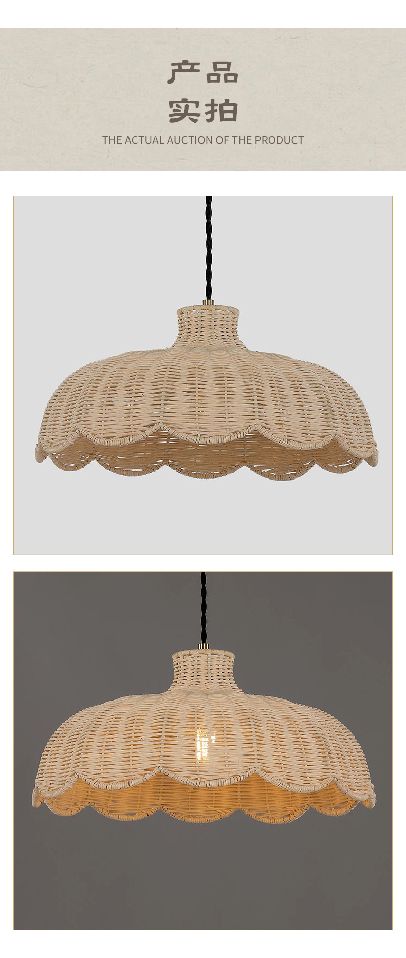 亚马逊东南亚手工藤编灯扇贝圆形灯现代客厅装饰吊灯民宿复古吊灯