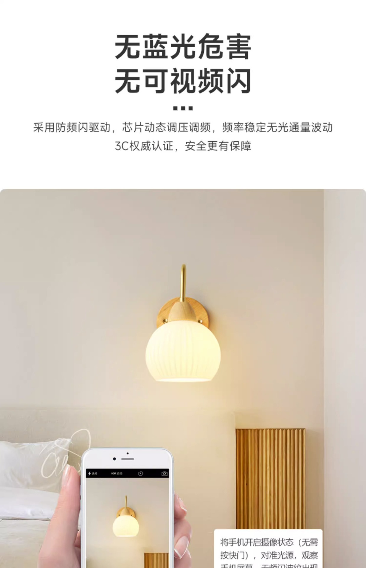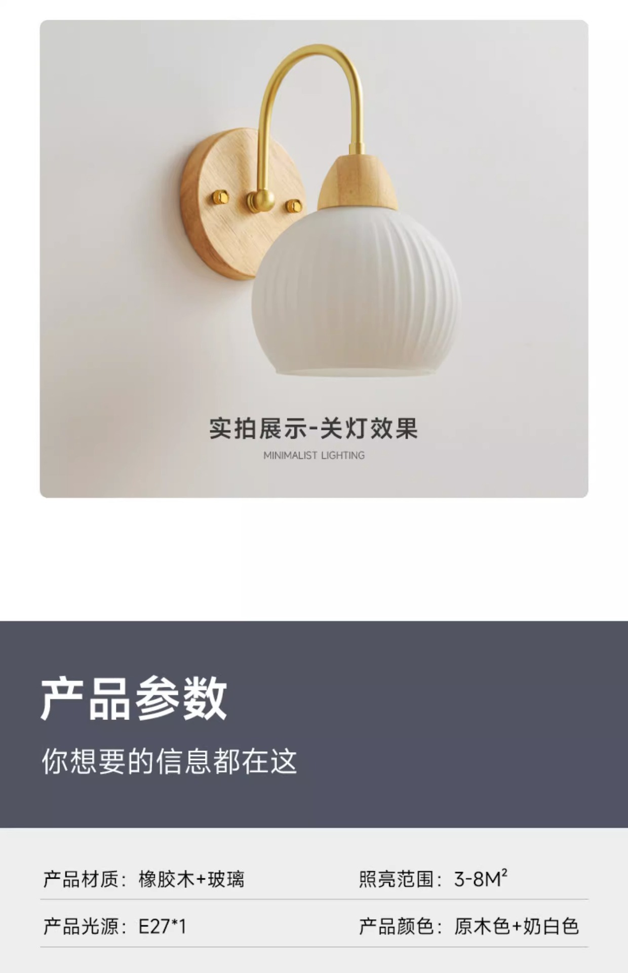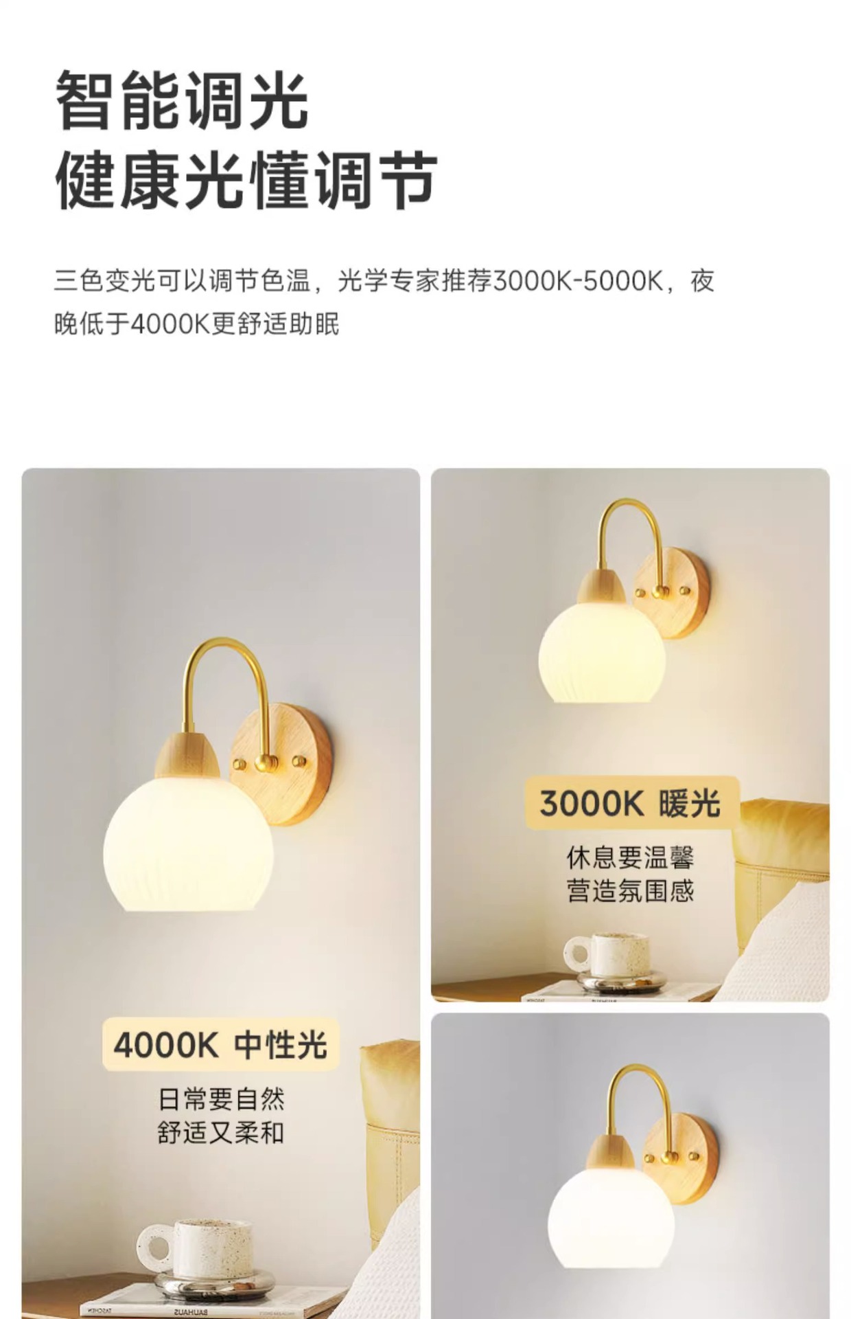 卧室床头灯壁灯轻奢简约现代客厅背景墙灯北欧美式原木楼梯过道灯