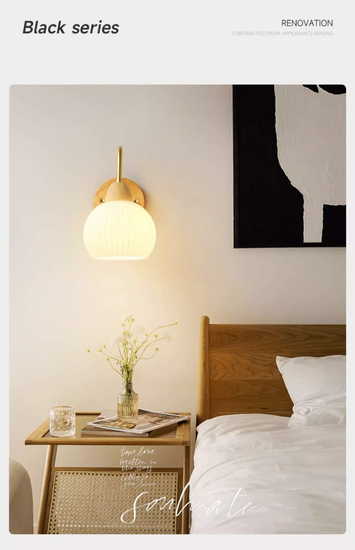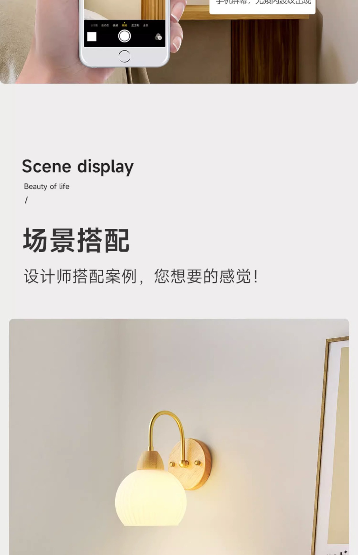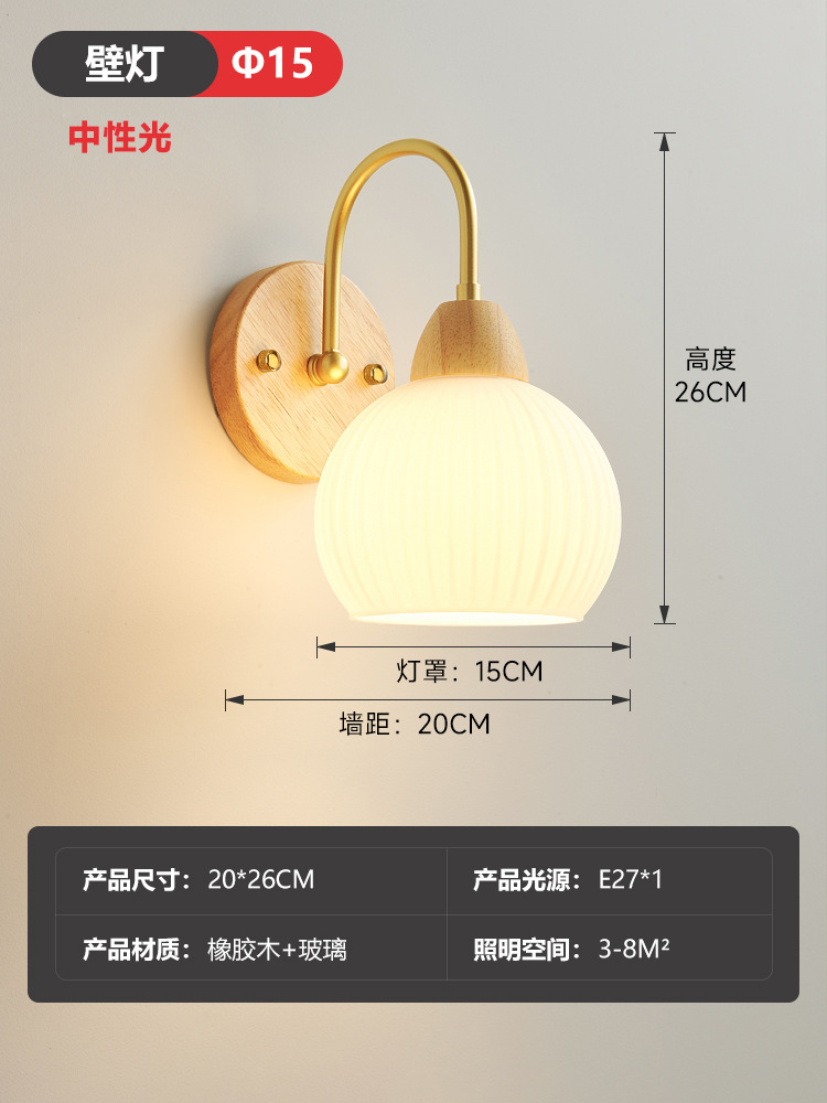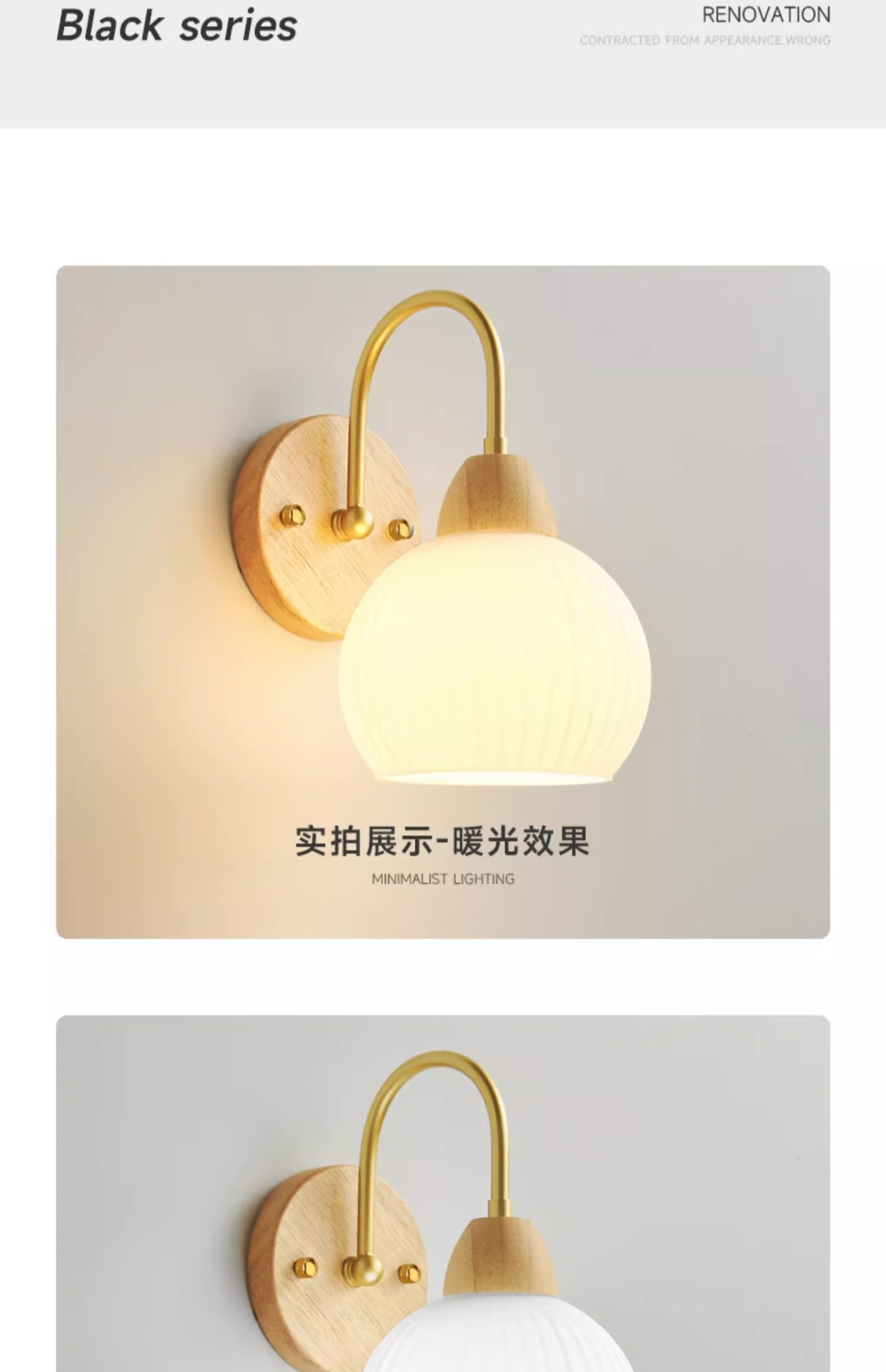 卧室床头灯壁灯轻奢简约现代客厅背景墙灯北欧美式原木楼梯过道灯