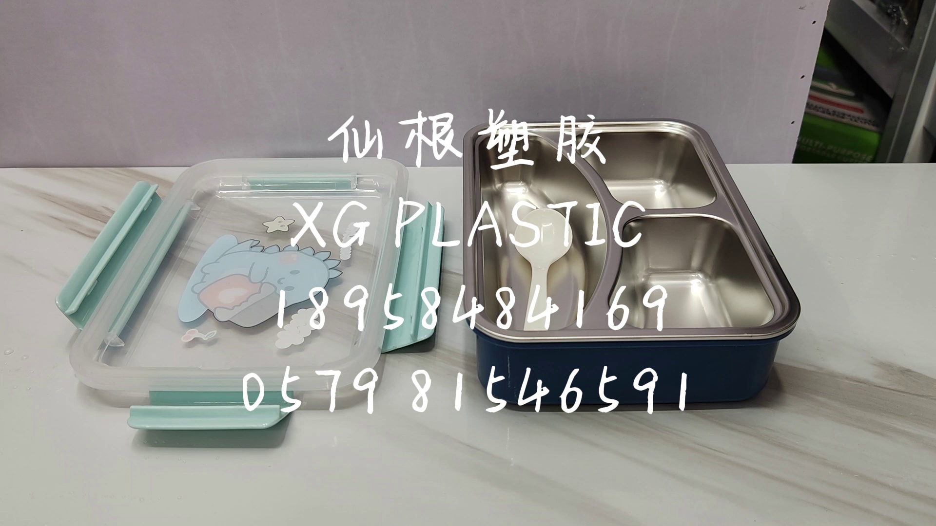 长方形饭盒不锈钢三格饭盒带勺卡通学生饭盒600毫升午餐盒便当盒
