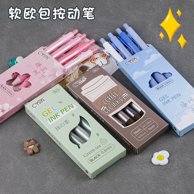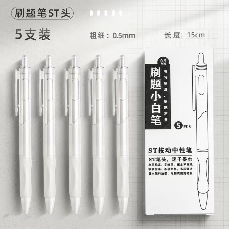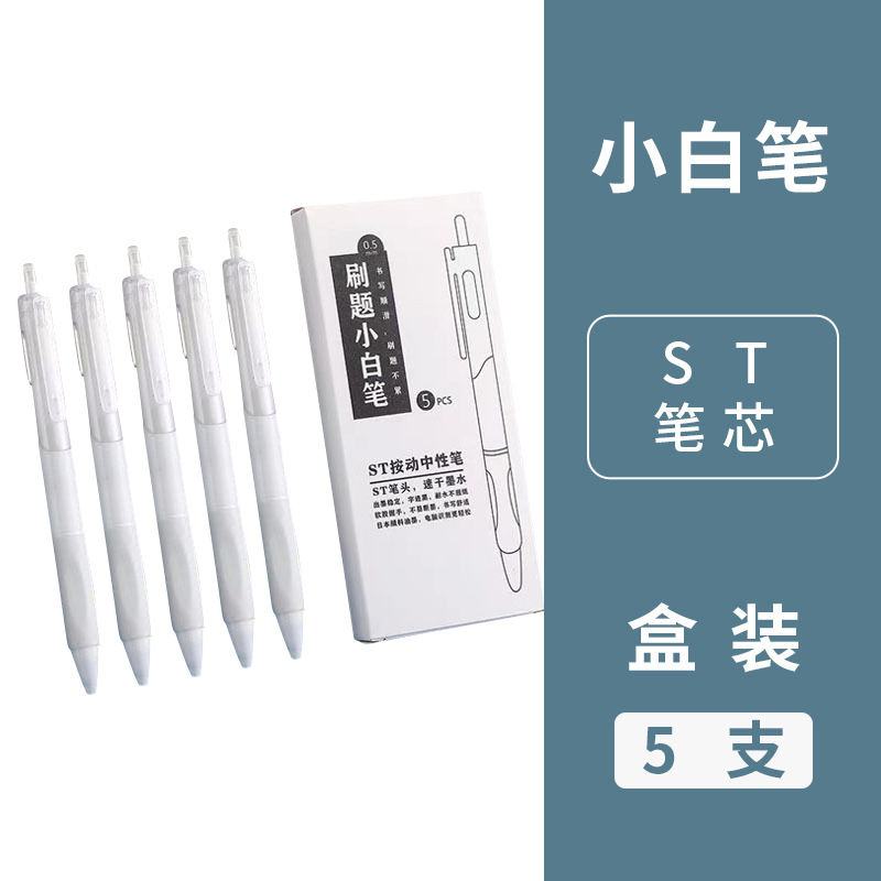 小白笔中性笔按动笔ins高颜值 按压速干刷题笔办公签字笔一件代发