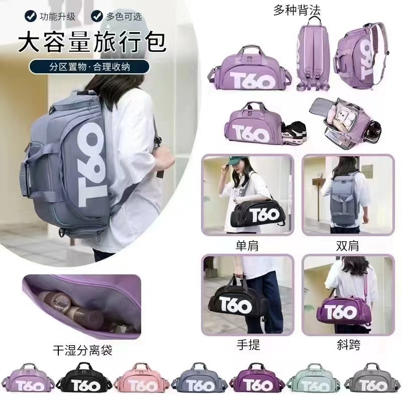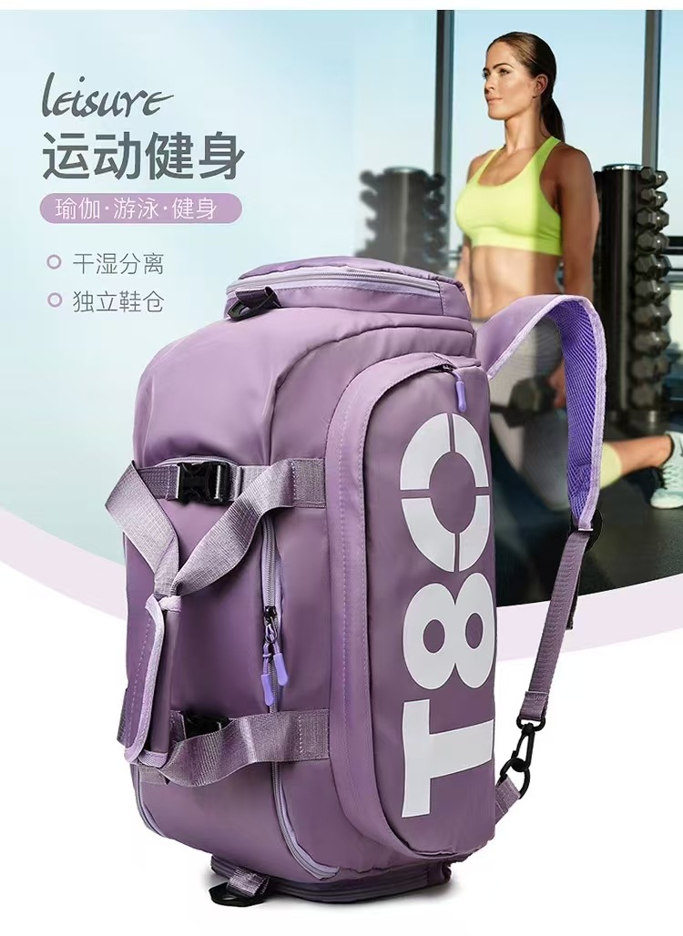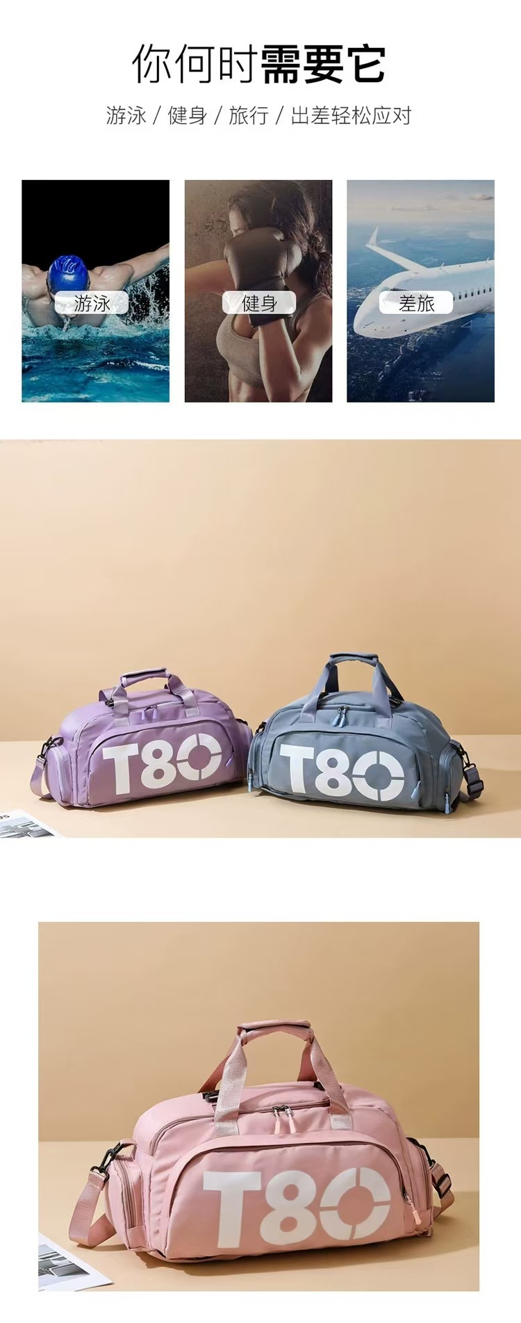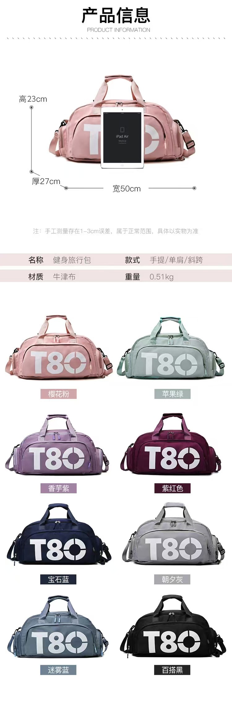 新款简约瑜伽健身包带干湿袋大容量旅行包带鞋仓收纳包可印logo