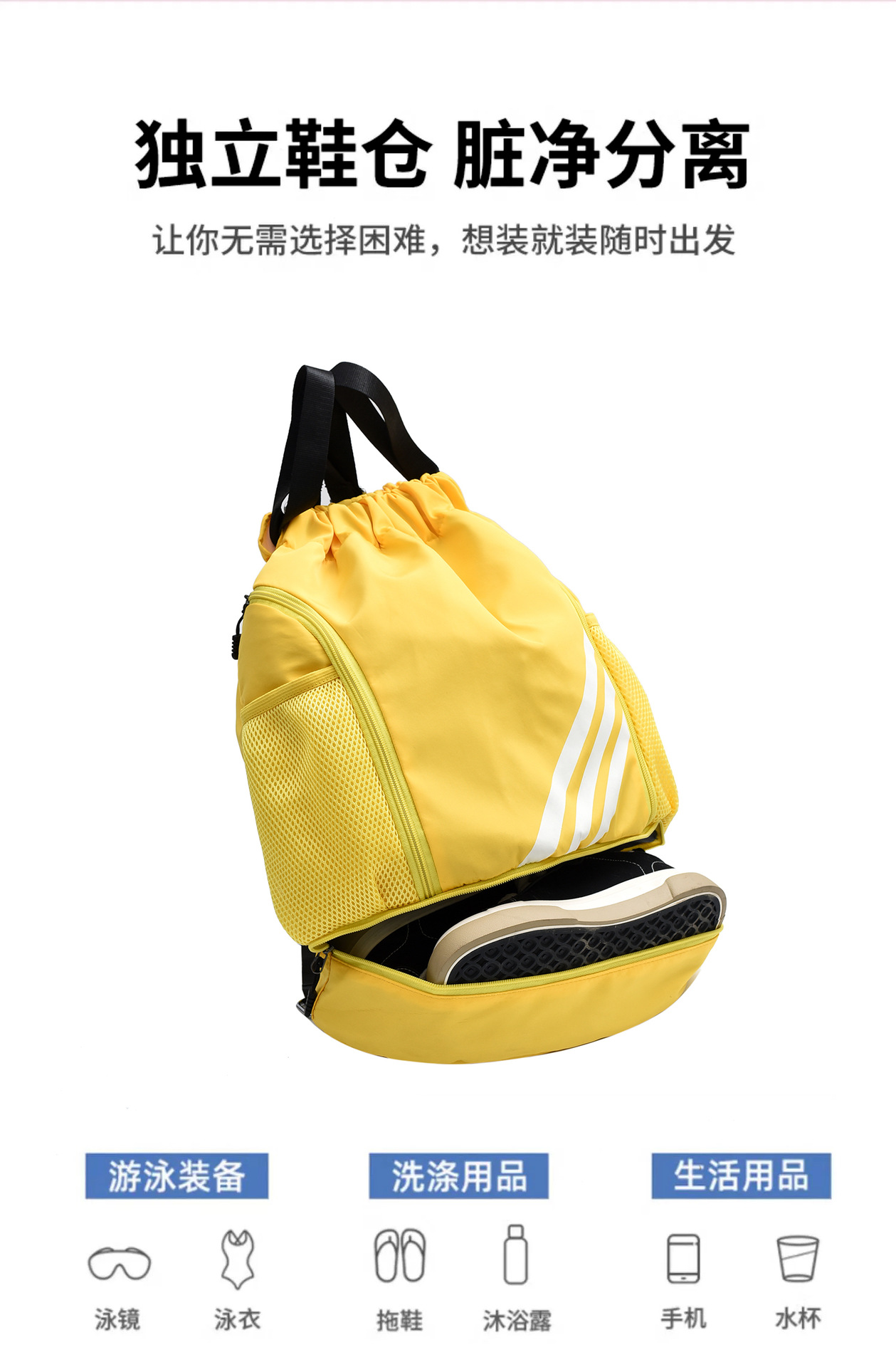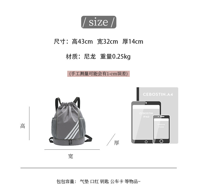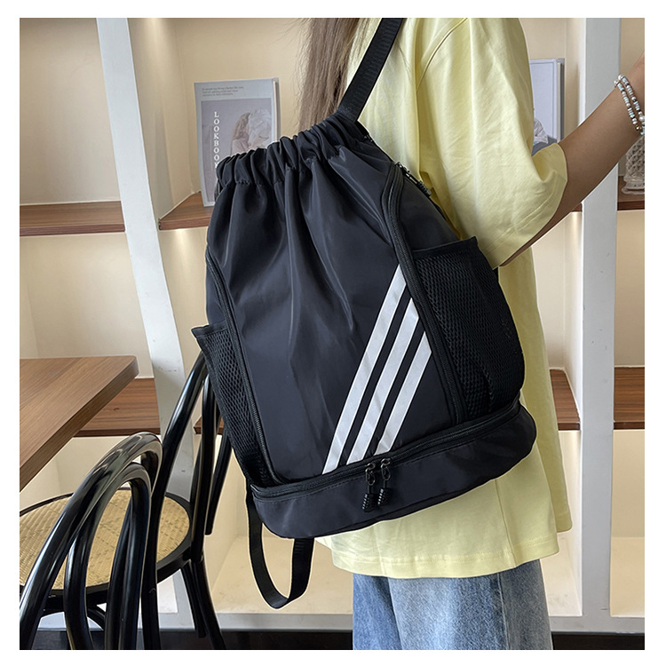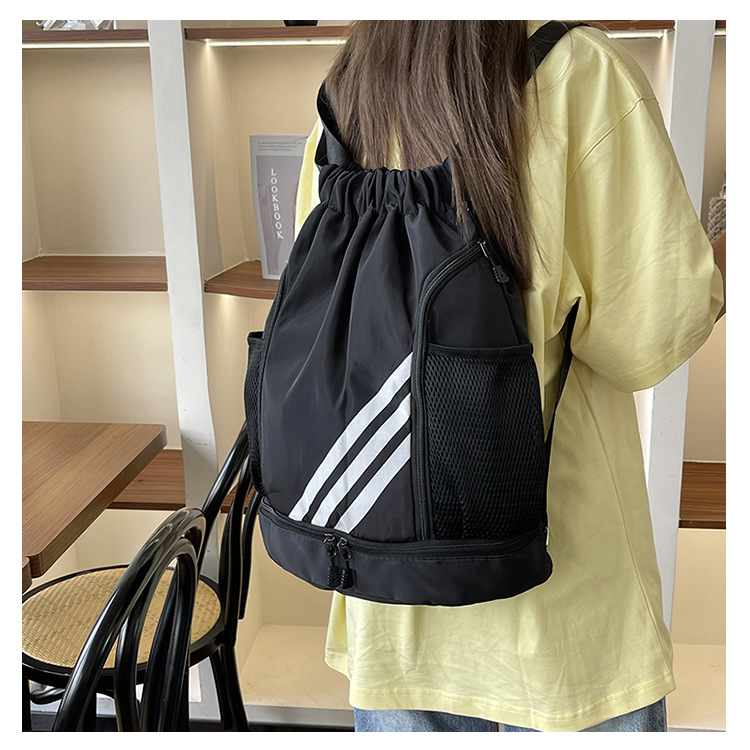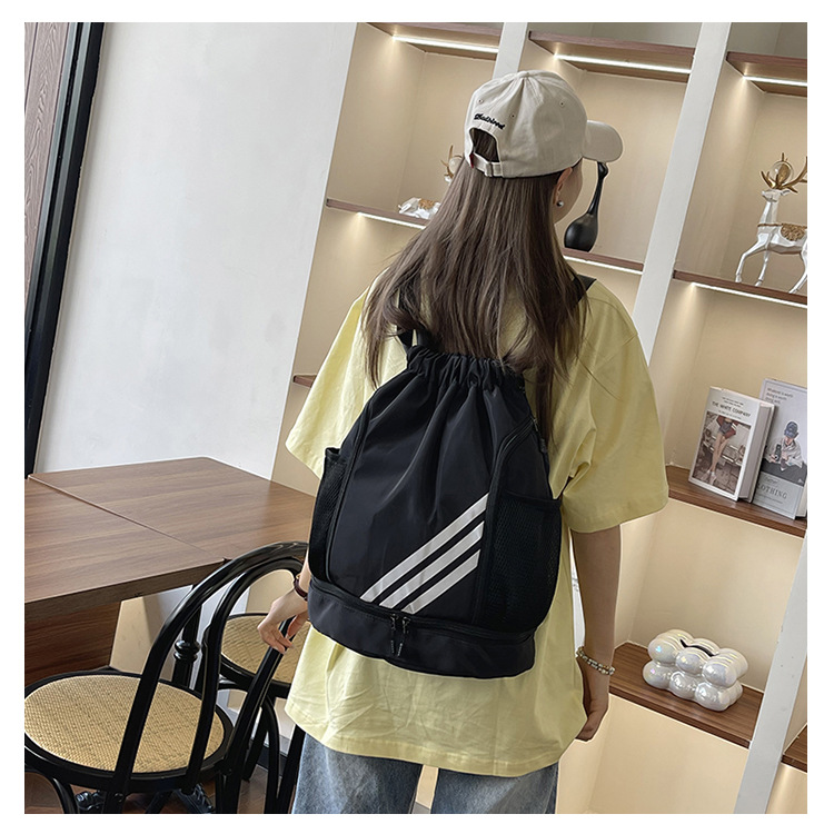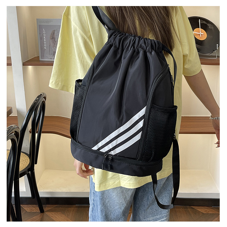 运动健身抽绳束口双肩包休闲旅行大容量背包干湿分离男女运动球包