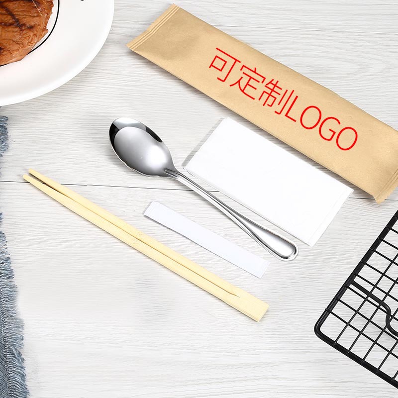 一次性筷子四件套 外卖打包餐具竹筷不锈钢勺牙签纸巾四合一套装