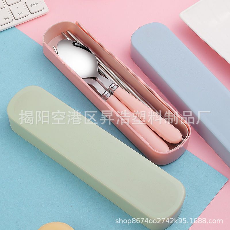 便携餐具筷子勺子叉子套装不锈钢+塑料学生餐具吃饭叉勺筷套装批