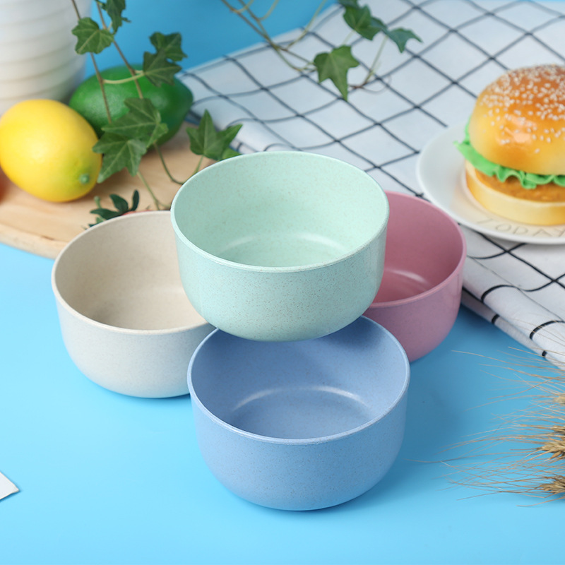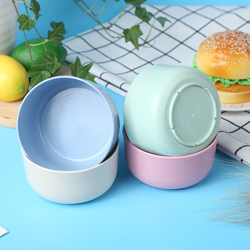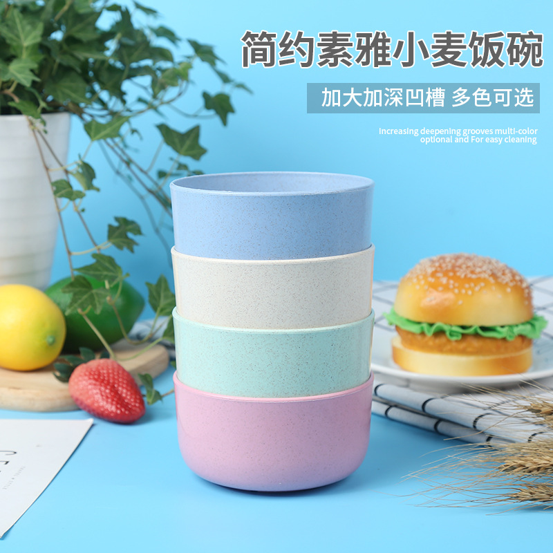小麦秸秆塑料碗家用汤碗饭碗圆形碗北欧四色套装儿童餐具可logo